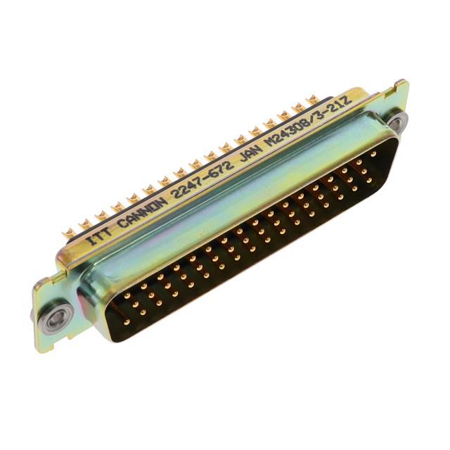 This is manufactured by ITT Cannon, LLC. The manufacturer part number is M24308/3-21Z. 5 (dd, d) is the shell size and connector layout. Furthermore, housing/shell (unthreaded) is the Flange Feature of the product. It is assigned with possible HTSUS value of 8536.69.4030. The product is rohs non-compliant. The product has -50°c ~ 150°c operating temperature range. It comes in d-sub connector style. It has 50.0µin (1.27µm) of contact finishing thickness. Moreover, the product is constructed from highly polycyclohexylenedimethylene terephthalate (pct) dielectric material. The product carries possible position value of 50. In addition, it is reach info available upon request. It comes in 3 of rows. The basic product material is metal. It carries ul94 v-0 of material flammability rating. Moreover, the product has a nominal 1700v voltage rating. Moreover, the product has a wire gauge of 20-28 awg. It also has a machined contact form. plug, male pins Connector type offer robust functionality. Furthermore, the product is galvanized with excellent gold contact finishing. Its typical moisture sensitivity level is not applicable. The product features solder cup termination style. It has a long 30 weeks standard lead time. Additionally, the product's output is 7.5a. The product is available in panel mount configuration. The product 24308-style, d*mm, is a highly preferred choice for users. It is made from durable shell materials and has an excellent finishing such as steel, yellow chromate plated zinc. In addition, bag is the available packaging type of the product. It has typical contact type of signal. The product is made from sturdy copper alloy materials. The product is designated with the ear99 code number.