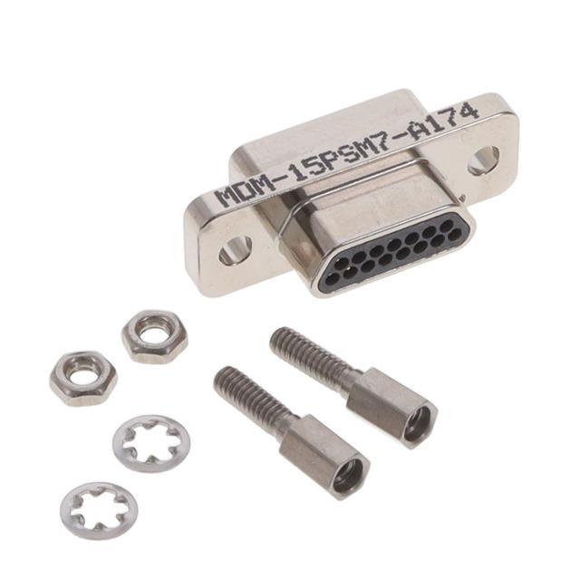 This is manufactured by ITT Cannon, LLC. The manufacturer part number is MDM-15PSM7-A174. 0.050 pitch x 0.043 row to row is the shell size and connector layout. Furthermore, mating side, female screwlock (2-56) is the Flange Feature of the product. It is assigned with possible HTSUS value of 8536.69.8000. The product is rohs3 compliant. It comes in d-type, micro-d connector style. The product carries possible position value of 15. In addition, it is reach info available upon request. It comes in 2 of rows. The basic product material is metal. plug, male pins Connector type offer robust functionality. Furthermore, the product is galvanized with excellent gold contact finishing. Its typical moisture sensitivity level is 1 (unlimited). It has typical contact type of signal. The product features solder cup termination style. It has a long 32 weeks standard lead time. Additionally, the product's output is 3a. The product is available in free hanging (in-line) configuration. The product 83513-style micro d metal shell (mdm), is a highly preferred choice for users. It is made from durable shell materials and has an excellent finishing such as aluminum alloy, nickel plated, electroless. In addition, bulk is the available packaging type of the product. Moreover, it corresponds to mdm-1, a base product number of the product. The product is designated with the ear99 code number.