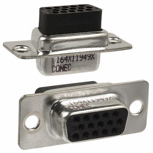 This is manufactured by Conec. The manufacturer part number is 164X11949X. It has mounting hole hardware mounting . The product is available in through hole configuration. In addition, female is the available "Gender" of the product. It has straight body orientation. The product contains 15 contacts. 1 (de, e) high density is the shell size and connector layout. Furthermore, housing/shell (unthreaded) is the Flange Feature of the product. It is assigned with possible HTSUS value of 8538.90.8180. The product is rohs3 compliant. Note: contacts not included. The product has -55°c ~ 125°c operating temperature range. It comes in d-sub, high density connector style. The product is well-finished with a 320µin (8.13µm) thickness. Moreover, the product is constructed from highly polybutylene terephthalate (pbt), glass filled dielectric material. It has a long 12 weeks standard lead time. In addition, it is reach unaffected. The product carries possible position value of 15. It comes in 3 of rows. It is shipped in tray package . receptacle for female contacts Connector type offer robust functionality. Its typical moisture sensitivity level is not applicable. It has typical contact type of signal. It is IP rated with ip20. The product is available in free hanging (in-line) configuration. It has a classic black colour. The product 164x, is a highly preferred choice for users. It is made from durable shell materials and has an excellent finishing such as steel, tin plated. Moreover, it corresponds to 164x119, a base product number of the product. The product is designated with the ear99 code number.