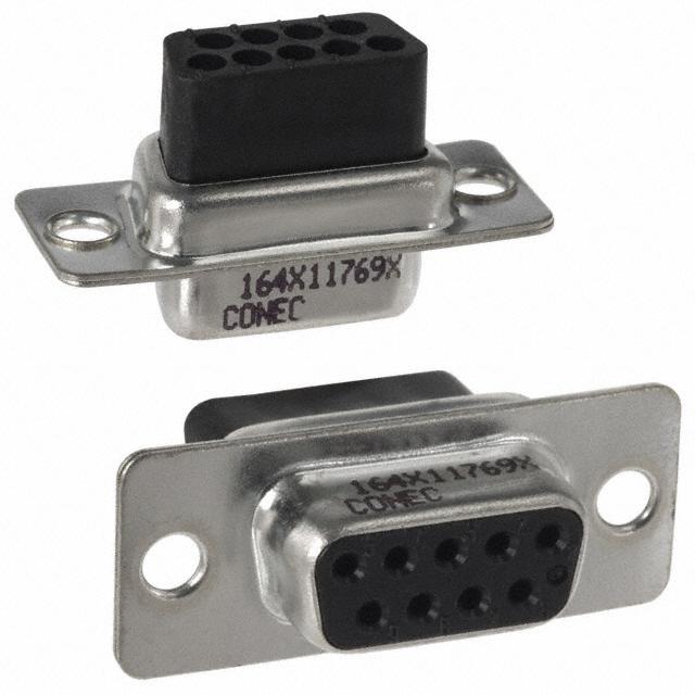 This is manufactured by Conec. The manufacturer part number is 164X11769X. It has mounting hole hardware mounting . The product is available in through hole configuration. In addition, female is the available "Gender" of the product. It has straight body orientation. The product contains 9 contacts. 1 (de, e) is the shell size and connector layout. Furthermore, housing/shell (unthreaded) is the Flange Feature of the product. It is assigned with possible HTSUS value of 8538.90.8180. The product is rohs3 compliant. Note: contacts not included. The product has -55°c ~ 125°c operating temperature range. It comes in d-sub connector style. The product is well-finished with a 320µin (8.13µm) thickness. Moreover, the product is constructed from highly polybutylene terephthalate (pbt), glass filled dielectric material. It has a long 12 weeks standard lead time. In addition, it is reach unaffected. The product carries possible position value of 9. It comes in 2 of rows. It is shipped in tray package . receptacle for female contacts Connector type offer robust functionality. Its typical moisture sensitivity level is not applicable. It has typical contact type of signal. It is IP rated with ip20. The product is available in free hanging (in-line) configuration. It has a classic black colour. The product 164x, is a highly preferred choice for users. It is made from durable shell materials and has an excellent finishing such as steel, tin plated. Moreover, it corresponds to 164x117, a base product number of the product. The product is designated with the ear99 code number.