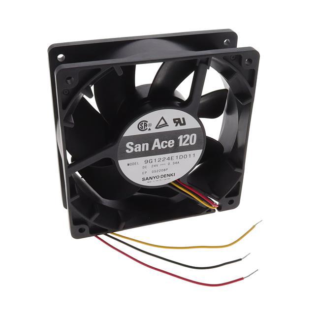 This is manufactured by Sanyo Denki America Inc.. The manufacturer part number is 9G1224E1D011. The blades are constructed from robust plastic materials. It is assigned with possible HTSUS value of 8414.59.6590. The product is rohs3 compliant. Furthermore, the product is 38.00mm wide. The product features power and watts of 8.16 w. It has a 118.0 cfm (3.30m³/min) air flow rate. It is approved by csa, tuv, ul. While the voltage range is 20.4 ~ 27.6vdc. It has noise values of 46.0db(a). It also exhibits voltage rating of 24vdc. This has integrated with a ball, a bearing with long-lasting features. The product has -4 ~ 158°f (-20 ~ 70°c) operating temperature range. It provides maximum rpm up to 3100 rpm. This product offers longer life span for 40000 hrs @ 60°c. The product has a 0.401 in h2o (100.0 pa) static pressure. It is shipped in box package . The product's diameters include square - 119mm l x 119mm h. The product features 3 wire leads termination style. It has a long 18 weeks standard lead time. Additionally, the product's output is 0.340a. Its typical moisture sensitivity level is not applicable. The splendid features of the product include locked rotor sensor. The typical product's weight is 0.728 lb (330.22 g). The product san ace 120, is a highly preferred choice for users. The frame of the product is made from highly durable plastic materials. The latest designed fan is a type of tubeaxial offering unmatchable applications. Moreover, it corresponds to 9g1224, a base product number of the product. The product is designated with the ear99 code number.