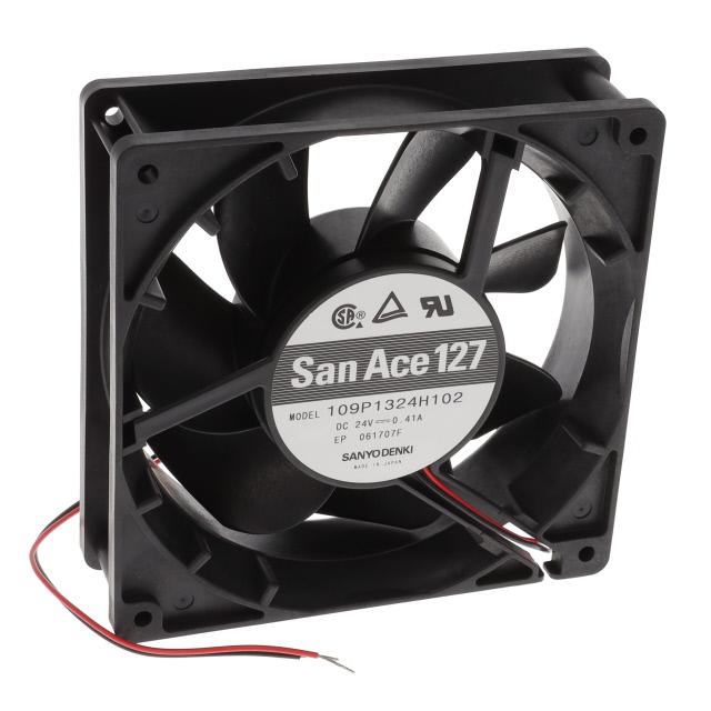This is manufactured by Sanyo Denki America Inc.. The manufacturer part number is 109P1324H102. The blades are constructed from robust plastic materials. It is assigned with possible HTSUS value of 8414.59.6590. The product is rohs3 compliant. Furthermore, the product is 38.00mm wide. The product features power and watts of 9.84 w. It has a 134.0 cfm (3.75m³/min) air flow rate. It is approved by csa, tuv, ul. While the voltage range is 20.4 ~ 27.6vdc. It has noise values of 45.0db(a). It also exhibits voltage rating of 24vdc. This has integrated with a ball, a bearing with long-lasting features. The product has -4 ~ 140°f (-20 ~ 60°c) operating temperature range. It provides maximum rpm up to 2950 rpm. This product offers longer life span for 40000 hrs @ 60°c. The product has a 0.394 in h2o (98.1 pa) static pressure. It is shipped in box package . The product's diameters include square - 127mm l x 127mm h. The product features 2 wire leads termination style. It has a long 18 weeks standard lead time. Additionally, the product's output is 0.410a. Its typical moisture sensitivity level is not applicable. The splendid features of the product include locked rotor protection. The typical product's weight is 0.772 lb (350.17 g). The product san ace 127, is a highly preferred choice for users. The frame of the product is made from highly durable plastic materials. The latest designed fan is a type of tubeaxial offering unmatchable applications. Moreover, it corresponds to 109p1324, a base product number of the product. The product is designated with the ear99 code number.
