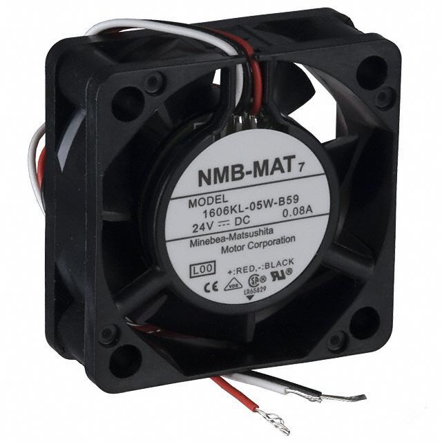 This is manufactured by NMB Technologies Corporation. The manufacturer part number is 1606KL-05W-B59-L00. The blades are constructed from robust plastic materials. It is assigned with possible HTSUS value of 8414.59.6590. The product is rohs compliant. Furthermore, the product is 15.00mm wide. The product features power and watts of 1.49 w. It has a 8.1 cfm (0.227m³/min) air flow rate. It is approved by ce, csa, ul, vde. While the voltage range is 22 ~ 25.2vdc. It has noise values of 34.0db. It also exhibits voltage rating of 24vdc. This has integrated with a ball, a bearing with long-lasting features. The product has 14 ~ 158°f (-10 ~ 70°c) operating temperature range. It provides maximum rpm up to 8000 rpm. The product has a 0.252 in h2o (62.8 pa) static pressure. It is shipped in bulk package . The product's diameters include square - 40mm l x 40mm h. The product features 3 wire leads termination style. Additionally, the product's output is 0.062a. Its typical moisture sensitivity level is 1 (unlimited). The splendid features of the product include locked rotor sensor. The typical product's weight is 0.044 lb (19.96 g). The product 1606kl, is a highly preferred choice for users. The frame of the product is made from highly durable plastic materials. The latest designed fan is a type of tubeaxial offering unmatchable applications. The product is designated with the ear99 code number.