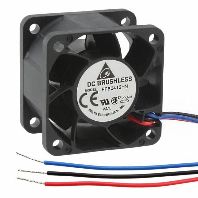 This is manufactured by Delta Electronics. The manufacturer part number is FFB0412HN-F00. The blades are constructed from robust plastic materials. It is assigned with possible HTSUS value of 8414.59.6590. The product is rohs3 compliant. Furthermore, the product is 28.00mm wide. The product features power and watts of 840 mw. It has a 10.6 cfm (0.297m³/min) air flow rate. It is approved by ce, csa, ul, vde. While the voltage range is 4.5 ~ 13.8vdc. It has noise values of 32.1db(a). It also exhibits voltage rating of 12vdc. In addition, it is reach unaffected. This has integrated with a ball, a bearing with long-lasting features. It provides maximum rpm up to 6500 rpm. The product has a 0.248 in h2o (61.8 pa) static pressure. The product's diameters include square - 40mm l x 40mm h. The product features 3 wire leads termination style. It has a long 32 weeks standard lead time. Additionally, the product's output is 0.070a. Its typical moisture sensitivity level is 1 (unlimited). The splendid features of the product include locked rotor protection, speed sensor (tach). The typical product's weight is 0.071 lb (32.21 g). The product ffb, is a highly preferred choice for users. The frame of the product is made from highly durable plastic materials. In addition, box is the available packaging type of the product. The latest designed fan is a type of tubeaxial offering unmatchable applications. Moreover, it corresponds to ffb0412, a base product number of the product. The product is designated with the ear99 code number.