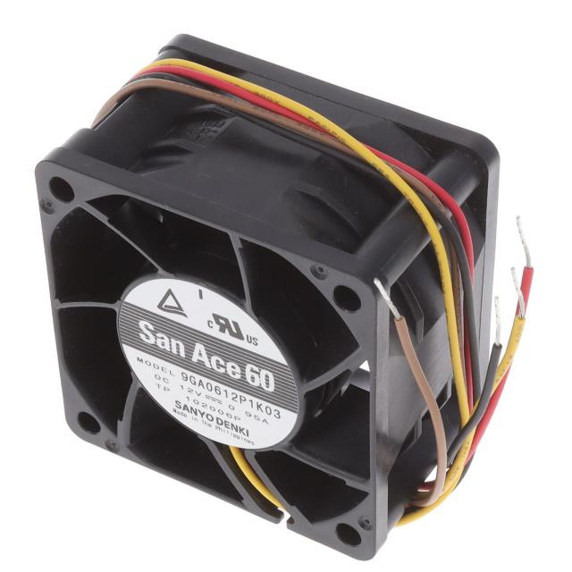This is manufactured by Sanyo Denki America Inc.. The manufacturer part number is 9GA0612P1K03. The blades are constructed from robust plastic materials. It is assigned with possible HTSUS value of 8414.59.6590. The product is rohs3 compliant. Furthermore, the product is 38.00mm wide. The product features power and watts of 11.4 w. It has a 53.0 cfm (1.48m³/min) air flow rate. It is approved by csa, tuv, ul. While the voltage range is 10.8 ~ 13.2vdc. It has noise values of 59.0db(a). It also exhibits voltage rating of 12vdc. In addition, it is vendor undefined. This has integrated with a ball, a bearing with long-lasting features. The product has -4 ~ 140°f (-20 ~ 60°c) operating temperature range. It provides maximum rpm up to 14800 rpm. This product offers longer life span for 40000 hrs @ 60°c. The product has a 2.410 in h2o (600.0 pa) static pressure. It is shipped in box package . The product's diameters include square - 60mm l x 60mm h. The product features 4 wire leads termination style. It has a long 18 weeks standard lead time. Additionally, the product's output is 0.950a. Its typical moisture sensitivity level is 1 (unlimited). The splendid features of the product include pwm control, speed sensor (tach). The typical product's weight is 0.287 lb (130.18 g). The product san ace 60, is a highly preferred choice for users. The frame of the product is made from highly durable plastic materials. The latest designed fan is a type of tubeaxial offering unmatchable applications. Moreover, it corresponds to 9ga0612, a base product number of the product. The product is designated with the ear99 code number.
