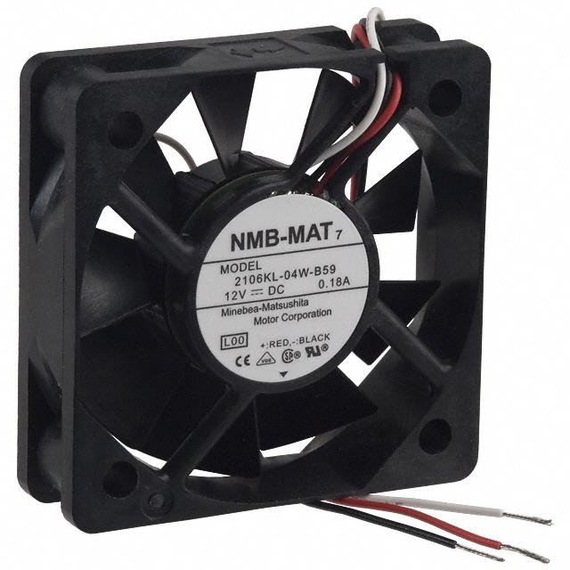 This is manufactured by NMB Technologies Corporation. The manufacturer part number is 2106KL-04W-B59-L00. The blades are constructed from robust plastic materials. It is assigned with possible HTSUS value of 8414.59.6590. The product is rohs compliant. Furthermore, the product is 15.00mm wide. The product features power and watts of 1.56 w. It has a 14.1 cfm (0.395m³/min) air flow rate. It is approved by ce, csa, ul, vde. While the voltage range is 10.2 ~ 13vdc. It has noise values of 30.0db. It also exhibits voltage rating of 12vdc. This has integrated with a ball, a bearing with long-lasting features. The product has 14 ~ 158°f (-10 ~ 70°c) operating temperature range. It provides maximum rpm up to 4900 rpm. This product offers longer life span for 50000 hrs @ 25°c. The product has a 0.140 in h2o (34.9 pa) static pressure. The product's diameters include square - 52mm l x 52mm h. The product features 3 wire leads termination style. Additionally, the product's output is 0.130a. Its typical moisture sensitivity level is 1 (unlimited). The splendid features of the product include locked rotor sensor. The typical product's weight is 0.055 lb (24.95 g). The product 2106kl, is a highly preferred choice for users. The frame of the product is made from highly durable plastic materials. In addition, bulk is the available packaging type of the product. The latest designed fan is a type of tubeaxial offering unmatchable applications. The product is designated with the ear99 code number.
