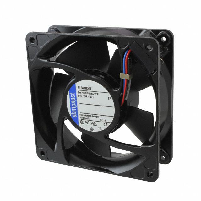 This is manufactured by ebm-papst Inc.. The manufacturer part number is 4184NXHH. The blades are constructed from robust polyamide (pa), nylon, fiberglass reinforced materials. It is assigned with possible HTSUS value of 8414.59.6590. The product is rohs3 compliant. Furthermore, the product is 38.00mm wide. The product features power and watts of 12.2 w. It has a 147.1 cfm (4.12m³/min) air flow rate. It is approved by ce, csa, ul, vde. While the voltage range is 12 ~ 28vdc. It has noise values of 60.0db(a). It also exhibits voltage rating of 24vdc. In addition, it is reach unaffected. This has integrated with a ball, a bearing with long-lasting features. The product has -22 ~ 158°f (-30 ~ 70°c) operating temperature range. It provides maximum rpm up to 4400 rpm. This product offers longer life span for 70000 hrs @ 40°c. The product's diameters include square - 119mm l x 119mm h. The product features 2 terminals termination style. It has a long 9 weeks standard lead time. Its typical moisture sensitivity level is 1 (unlimited). The typical product's weight is 0.86 lb (390.09 g). The product 4100n, is a highly preferred choice for users. The frame of the product is made from highly durable aluminum materials. In addition, bulk is the available packaging type of the product. The latest designed fan is a type of tubeaxial offering unmatchable applications. Moreover, it corresponds to 4184n, a base product number of the product. The product is designated with the ear99 code number.