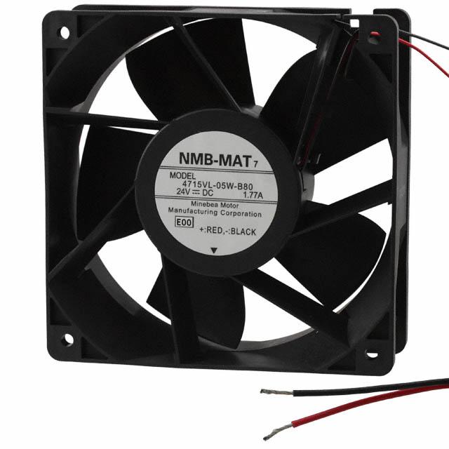 This is manufactured by NMB Technologies Corporation. The manufacturer part number is 4715VL-05W-B80-E00. The blades are constructed from robust plastic materials. It is assigned with possible HTSUS value of 8414.59.6590. The product is rohs compliant. Furthermore, the product is 38.00mm wide. The product features power and watts of 35.5 w. It has a 243.2 cfm (6.81m³/min) air flow rate. It is approved by ce, ul, vde. While the voltage range is 18 ~ 27.6vdc. It has noise values of 66.0db(a). It also exhibits voltage rating of 24vdc. This has integrated with a ball, a bearing with long-lasting features. The product has 14 ~ 140°f (-10 ~ 60°c) operating temperature range. It provides maximum rpm up to 6400 rpm. This product offers longer life span for 100000 hrs @ 25°c. The product has a 1.457 in h2o (362.9 pa) static pressure. It is shipped in box package . The product's diameters include square - 120mm l x 120mm h. The product features 2 wire leads termination style. Additionally, the product's output is 1.48a. Its typical moisture sensitivity level is 1 (unlimited). The typical product's weight is 0.816 lb (370.13 g). The product 4715vl, is a highly preferred choice for users. The frame of the product is made from highly durable plastic materials. The latest designed fan is a type of tubeaxial offering unmatchable applications. Moreover, it corresponds to 4715vl, a base product number of the product. The product is designated with the ear99 code number.