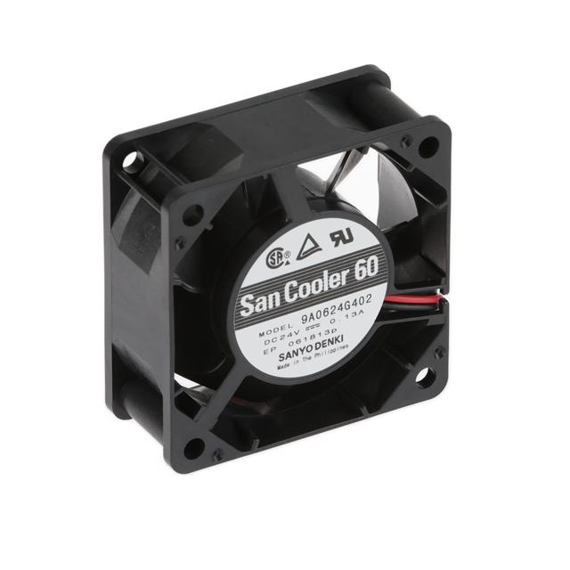 This is manufactured by Sanyo Denki America Inc.. The manufacturer part number is 9A0624G402. The blades are constructed from robust plastic materials. It is assigned with possible HTSUS value of 8414.59.6590. The product is rohs3 compliant. Furthermore, the product is 25.00mm wide. The product features power and watts of 3.12 w. It has a 27.6 cfm (0.773m³/min) air flow rate. It is approved by csa, tuv, ul. While the voltage range is 12 ~ 27.6vdc. It has noise values of 39.0db(a). It also exhibits voltage rating of 24vdc. This has integrated with a ball, a bearing with long-lasting features. The product has -4 ~ 140°f (-20 ~ 60°c) operating temperature range. It provides maximum rpm up to 5600 rpm. This product offers longer life span for 30000 hrs @ 60°c. The product has a 0.351 in h2o (87.3 pa) static pressure. It is shipped in box package . The product's diameters include square - 60mm l x 60mm h. The product features 2 wire leads termination style. It has a long 18 weeks standard lead time. Additionally, the product's output is 0.130a. Its typical moisture sensitivity level is 1 (unlimited). The splendid features of the product include locked rotor protection. The typical product's weight is 0.176 lb (80.00 g). The product san cooler 60, is a highly preferred choice for users. The frame of the product is made from highly durable plastic materials. The latest designed fan is a type of tubeaxial offering unmatchable applications. Moreover, it corresponds to 9a0624, a base product number of the product. The product is designated with the ear99 code number.