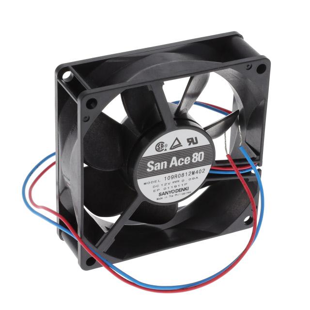 This is manufactured by Sanyo Denki America Inc.. The manufacturer part number is 109R0812M402. The blades are constructed from robust plastic materials. It is assigned with possible HTSUS value of 8414.59.6590. The product is rohs3 compliant. Furthermore, the product is 25.00mm wide. The product features power and watts of 1.08 w. It has a 29.3 cfm (0.820m³/min) air flow rate. It is approved by csa, tuv, ul. While the voltage range is 6 ~ 13.8vdc. It has noise values of 23.0db(a). It also exhibits voltage rating of 12vdc. This has integrated with a ball, a bearing with long-lasting features. The product has -4 ~ 158°f (-20 ~ 70°c) operating temperature range. It provides maximum rpm up to 2350 rpm. This product offers longer life span for 60000 hrs @ 60°c. The product has a 0.090 in h2o (22.4 pa) static pressure. It is shipped in box package . The product's diameters include square - 80mm l x 80mm h. The product features 2 wire leads termination style. It has a long 18 weeks standard lead time. Additionally, the product's output is 0.090a. Its typical moisture sensitivity level is not applicable. The splendid features of the product include locked rotor protection. The typical product's weight is 0.243 lb (110.22 g). The product san ace 80, is a highly preferred choice for users. The frame of the product is made from highly durable plastic materials. The latest designed fan is a type of tubeaxial offering unmatchable applications. Moreover, it corresponds to 109r0812, a base product number of the product. The product is designated with the ear99 code number.
