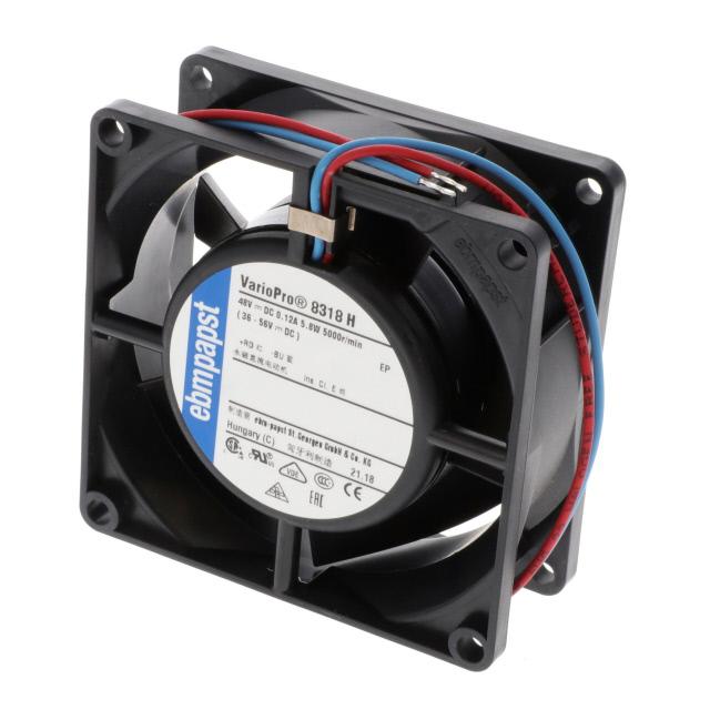 This is manufactured by ebm-papst Inc.. The manufacturer part number is 8318H. The blades are constructed from robust polyamide (pa), nylon, fiberglass reinforced materials. It is assigned with possible HTSUS value of 8414.59.6590. The product is rohs3 compliant. Furthermore, the product is 32.00mm wide. The product features power and watts of 6.2 w. It has a 47.1 cfm (1.32m³/min) air flow rate. It is approved by ce, csa, ul, vde. While the voltage range is 36 ~ 56vdc. It has noise values of 48.0db(a). It also exhibits voltage rating of 48vdc. In addition, it is reach unaffected. This has integrated with a ball, a bearing with long-lasting features. The product has -4 ~ 149°f (-20 ~ 65°c) operating temperature range. It provides maximum rpm up to 5000 rpm. This product offers longer life span for 55000 hrs @ 40°c. It is shipped in bulk package . The product's diameters include square - 80mm l x 80mm h. The product features 2 wire leads termination style. It has a long 14 weeks standard lead time. Its typical moisture sensitivity level is not applicable. The splendid features of the product include locked rotor protection. The product 8300, is a highly preferred choice for users. The frame of the product is made from highly durable polybutylene terephthalate (pbt), fiberglass reinforced materials. The latest designed fan is a type of tubeaxial offering unmatchable applications. The product is designated with the ear99 code number.