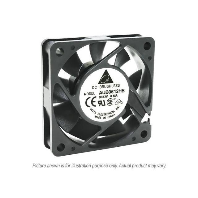 This is manufactured by Delta Electronics. The manufacturer part number is AUB0612HB-A. The blades are constructed from robust plastic materials. It is assigned with possible HTSUS value of 8414.59.6590. The product is rohs3 compliant. Furthermore, the product is 15.00mm wide. The product features power and watts of 720 mw. It has a 15.3 cfm (0.428m³/min) air flow rate. It is approved by ce, curus, tuv. While the voltage range is 7 ~ 12.6vdc. It has noise values of 23.5db(a). It also exhibits voltage rating of 12vdc. In addition, it is reach unaffected. This has integrated with a superflo, a bearing with long-lasting features. The product has 14 ~ 140°f (-10 ~ 60°c) operating temperature range. It provides maximum rpm up to 3000 rpm. This product offers longer life span for 50000 hrs @ 40°c. The product has a 0.087 in h2o (21.7 pa) static pressure. The product's diameters include square - 60mm l x 60mm h. The product features 2 wire leads termination style. It has a long 32 weeks standard lead time. Additionally, the product's output is 0.060a. Its typical moisture sensitivity level is 1 (unlimited). The splendid features of the product include locked rotor protection. The typical product's weight is 0.085 lb (38.56 g). The product aub, is a highly preferred choice for users. The frame of the product is made from highly durable plastic materials. In addition, box is the available packaging type of the product. The latest designed fan is a type of tubeaxial offering unmatchable applications. Moreover, it corresponds to aub0612, a base product number of the product. The product is designated with the ear99 code number.