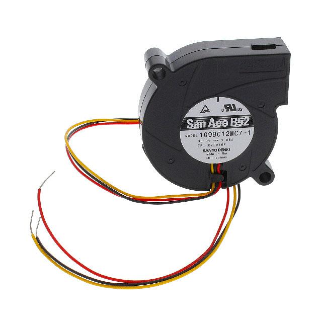 This is manufactured by Sanyo Denki America Inc.. The manufacturer part number is 109BC12MC7-1. The blades are constructed from robust plastic materials. It is assigned with possible HTSUS value of 8414.59.6560. The product is rohs3 compliant. Furthermore, the product is 15.00mm wide. The product features power and watts of 720 mw. It has a 3.2 cfm (0.090m³/min) air flow rate. It is approved by csa, tuv, ul. While the voltage range is 6 ~ 13.8vdc. It has noise values of 35.0db(a). It also exhibits voltage rating of 12vdc. In addition, it is vendor undefined. This has integrated with a ball, a bearing with long-lasting features. The product has -4 ~ 158°f (-20 ~ 70°c) operating temperature range. It provides maximum rpm up to 4600 rpm. This product offers longer life span for 40000 hrs @ 60°c. The product has a 0.400 in h2o (99.6 pa) static pressure. It is shipped in box package . The product's diameters include square/rounded - 51mm l x 52.6mm h. The product features 3 wire leads termination style. It has a long 18 weeks standard lead time. Additionally, the product's output is 0.060a. Its typical moisture sensitivity level is not applicable. The splendid features of the product include locked rotor protection, speed sensor (tach). The typical product's weight is 0.073 lb (33.11 g). The product san ace b52, is a highly preferred choice for users. The frame of the product is made from highly durable plastic materials. The latest designed fan is a type of blower offering unmatchable applications. Moreover, it corresponds to 109bc12, a base product number of the product. The product is designated with the ear99 code number.