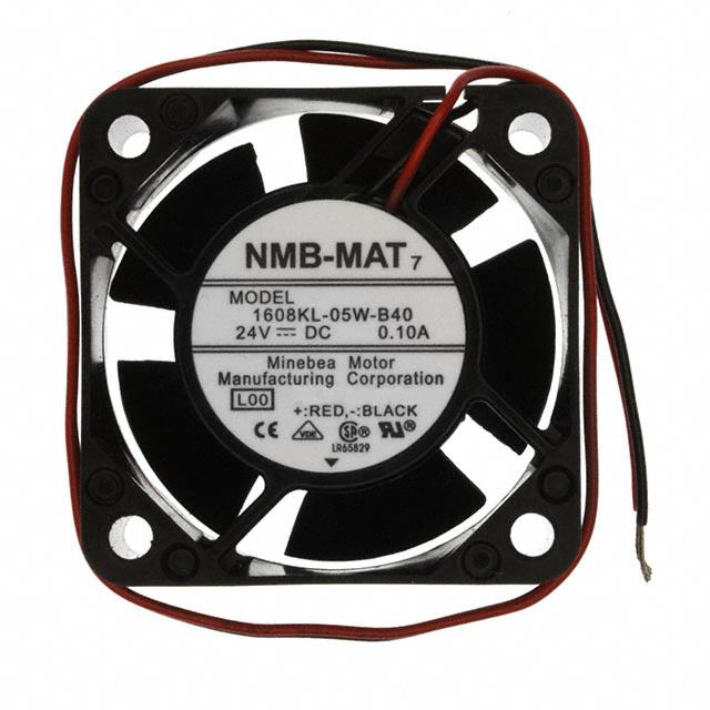 This is manufactured by NMB Technologies Corporation. The manufacturer part number is 1608KL-05W-B40-L00. The blades are constructed from robust plastic materials. It also exhibits voltage rating of 24vdc. Furthermore, the product is 20.00mm wide. The product features power and watts of 1.68 w. It has a 8.4 cfm (0.235m³/min) air flow rate. It is approved by ce, csa, ul, vde. While the voltage range is 20 ~ 25.2vdc. It has noise values of 29.0db. It is assigned with possible HTSUS value of 8414.59.6590. In addition, it is reach unaffected. This has integrated with a ball, a bearing with long-lasting features. The product has 14 ~ 158°f (-10 ~ 70°c) operating temperature range. It provides maximum rpm up to 7500 rpm. This product offers longer life span for 50000 hrs @ 25°c. The product has a 0.217 in h2o (54.1 pa) static pressure. It is shipped in box package . The product's diameters include square - 40mm l x 40mm h. The product features 2 wire leads termination style. Additionally, the product's output is 0.070a. Its typical moisture sensitivity level is not applicable. The typical product's weight is 0.055 lb (24.95 g). The product 1608kl, is a highly preferred choice for users. The frame of the product is made from highly durable plastic materials. The latest designed fan is a type of tubeaxial offering unmatchable applications. The product is designated with the ear99 code number.