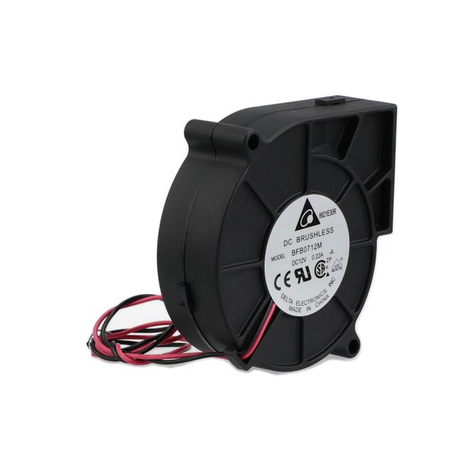 This is manufactured by Delta Electronics. The manufacturer part number is BFB0712M-A. The blades are constructed from robust plastic materials. It is assigned with possible HTSUS value of 8414.59.6560. The product is rohs3 compliant. Furthermore, the product is 25.00mm wide. The product features power and watts of 1.92 w. It has a 11.3 cfm (0.316m³/min) air flow rate. It is approved by ce, csa, ul, vde. While the voltage range is 7 ~ 13.8vdc. It has noise values of 43.0db(a). It also exhibits voltage rating of 12vdc. In addition, it is reach unaffected. This has integrated with a ball, a bearing with long-lasting features. The product has 14 ~ 158°f (-10 ~ 70°c) operating temperature range. It provides maximum rpm up to 3400 rpm. This product offers longer life span for 50000 hrs @ 40°c. The product has a 0.478 in h2o (119.1 pa) static pressure. The product's diameters include square/rounded - 75.7mm l x 75.7mm h. The product features 2 wire leads termination style. It has a long 32 weeks standard lead time. Additionally, the product's output is 0.160a. Its typical moisture sensitivity level is 1 (unlimited). The splendid features of the product include locked rotor protection. The typical product's weight is 0.199 lb (90.26 g). The product bfb, is a highly preferred choice for users. The frame of the product is made from highly durable plastic materials. In addition, box is the available packaging type of the product. The latest designed fan is a type of blower offering unmatchable applications. Moreover, it corresponds to bfb0712, a base product number of the product. The product is designated with the ear99 code number.