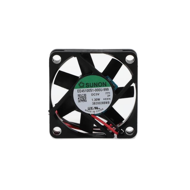 This is manufactured by Sunon Fans. The manufacturer part number is EE45100S1-000U-999. The blades are constructed from robust polybutylene terephthalate (pbt) materials. It is assigned with possible HTSUS value of 8414.59.6590. The product is rohs3 compliant. Furthermore, the product is 10.00mm wide. The product features power and watts of 1.3 w. It has a 11.0 cfm (0.308m³/min) air flow rate. It is approved by ce, cur, tuv, ul. While the voltage range is 4 ~ 6vdc. It has noise values of 32.0db(a). It also exhibits voltage rating of 5vdc. In addition, it is reach unaffected. This has integrated with a sleeve, a bearing with long-lasting features. The product has 14 ~ 158°f (-10 ~ 70°c) operating temperature range. It provides maximum rpm up to 6000 rpm. This product offers longer life span for 35000 hrs @ 40°c. The product has a 0.170 in h2o (42.3 pa) static pressure. It is shipped in bulk package . The product's diameters include square - 45mm l x 45mm h. The product features 2 wire leads termination style. It has a long 38 weeks standard lead time. Additionally, the product's output is 0.260a. Its typical moisture sensitivity level is 1 (unlimited). The typical product's weight is 0.036 lb (16.33 g). The product ee, is a highly preferred choice for users. The frame of the product is made from highly durable polybutylene terephthalate (pbt) materials. The latest designed fan is a type of tubeaxial offering unmatchable applications. Moreover, it corresponds to ee45100s1, a base product number of the product. The product is designated with the ear99 code number.