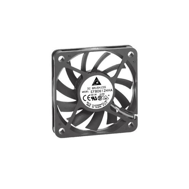 This is manufactured by Delta Electronics. The manufacturer part number is EFB0612HHA-R00. The blades are constructed from robust plastic materials. It is assigned with possible HTSUS value of 8414.59.6590. The product is rohs3 compliant. Furthermore, the product is 10.00mm wide. The product features power and watts of 2.16 w. It has a 21.2 cfm (0.594m³/min) air flow rate. It is approved by ce, csa, ul, vde. While the voltage range is 7 ~ 13.8vdc. It has noise values of 36.5db(a). It also exhibits voltage rating of 12vdc. In addition, it is reach unaffected. This has integrated with a ball, a bearing with long-lasting features. The product has 14 ~ 158°f (-10 ~ 70°c) operating temperature range. It provides maximum rpm up to 4200 rpm. This product offers longer life span for 70000 hrs @ 40°c. The product has a 0.132 in h2o (32.9 pa) static pressure. The product's diameters include square - 60mm l x 60mm h. The product features 3 wire leads termination style. It has a long 32 weeks standard lead time. Additionally, the product's output is 0.180a. Its typical moisture sensitivity level is not applicable. The splendid features of the product include locked rotor sensor. The typical product's weight is 0.062 lb (28.12 g). The product efb, is a highly preferred choice for users. The frame of the product is made from highly durable plastic materials. In addition, bulk is the available packaging type of the product. The latest designed fan is a type of tubeaxial offering unmatchable applications. Moreover, it corresponds to efb0612, a base product number of the product. The product is designated with the ear99 code number.
