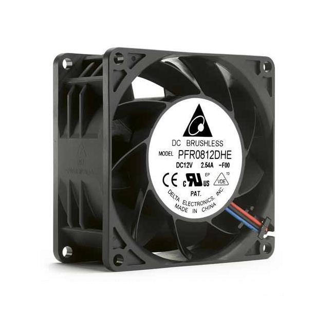 This is manufactured by Delta Electronics. The manufacturer part number is PFR0812DHE-F00. The blades are constructed from robust plastic materials. It is assigned with possible HTSUS value of 8414.59.6590. The product is rohs3 compliant. Furthermore, the product is 38.00mm wide. The product features power and watts of 25.2 w. It has a 109.5 cfm (3.07m³/min) air flow rate. It is approved by ce, curus, vde. While the voltage range is 7 ~ 13.2vdc. It has noise values of 66.0db(a). It also exhibits voltage rating of 12vdc. In addition, it is reach unaffected. This has integrated with a ball, a bearing with long-lasting features. The product has 14 ~ 158°f (-10 ~ 70°c) operating temperature range. It provides maximum rpm up to 11000 rpm. This product offers longer life span for 70000 hrs @ 40°c. The product has a 2.187 in h2o (544.7 pa) static pressure. The product's diameters include square - 80mm l x 80mm h. The product features 3 wire leads termination style. It has a long 32 weeks standard lead time. Additionally, the product's output is 2.10a. Its typical moisture sensitivity level is not applicable. The splendid features of the product include locked rotor protection, speed sensor (tach). The typical product's weight is 0.573 lb (260.00 g). The product pfr, is a highly preferred choice for users. The frame of the product is made from highly durable plastic materials. In addition, bulk is the available packaging type of the product. The latest designed fan is a type of tubeaxial offering unmatchable applications. Moreover, it corresponds to pfr0812, a base product number of the product. The product is designated with the ear99 code number.