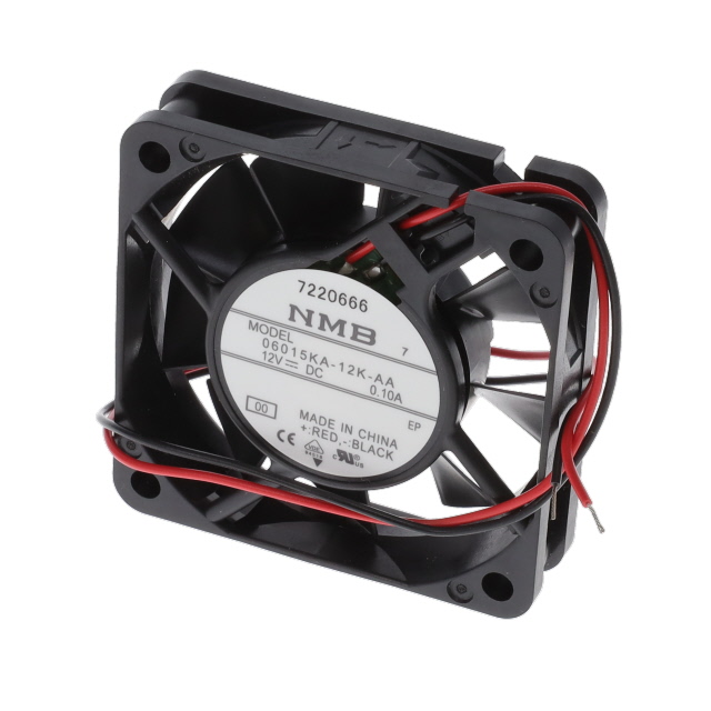 This is manufactured by NMB Technologies Corporation. The manufacturer part number is 06015KA-12K-AA-00. The blades are constructed from robust plastic materials. It is assigned with possible HTSUS value of 8414.59.6590. The product is rohs3 compliant. Furthermore, the product is 15.00mm wide. The product features power and watts of 840 mw. It has a 11.7 cfm (0.328m³/min) air flow rate. While the voltage range is 6 ~ 13.8vdc. It has noise values of 25.0db. It also exhibits voltage rating of 12vdc. This has integrated with a ball, a bearing with long-lasting features. The product has 14 ~ 140°f (-10 ~ 60°c) operating temperature range. It provides maximum rpm up to 3100 rpm. This product offers longer life span for 70000 hrs @ 25°c. The product has a 0.094 in h2o (23.4 pa) static pressure. The product's diameters include square - 60mm l x 60mm h. The product features 2 wire leads termination style. It has a long 22 weeks standard lead time. Additionally, the product's output is 0.070a. Its typical moisture sensitivity level is not applicable. The splendid features of the product include auto restart. The product 06015ka, is a highly preferred choice for users. The frame of the product is made from highly durable plastic materials. In addition, bulk is the available packaging type of the product. The latest designed fan is a type of tubeaxial offering unmatchable applications. The product is designated with the ear99 code number.