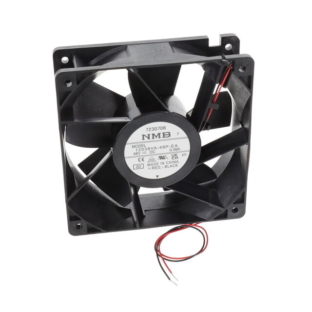 This is manufactured by NMB Technologies Corporation. The manufacturer part number is 12038VA-48P-EA-00. The blades are constructed from robust plastic materials. It is assigned with possible HTSUS value of 8414.59.6590. The product is rohs3 compliant. Furthermore, the product is 38.00mm wide. The product has 14 ~ 140°f (-10 ~ 60°c) operating temperature range. It also exhibits voltage rating of 48vdc. In addition, it is reach info available upon request. This has integrated with a ball, a bearing with long-lasting features. This product offers longer life span for 100000 hrs @ 25°c. The product's diameters include square - 120mm l x 120mm h. The product features 2 wire leads termination style. It has a long 22 weeks standard lead time. Its typical moisture sensitivity level is not applicable. The splendid features of the product include auto restart. The product 12038va, is a highly preferred choice for users. The frame of the product is made from highly durable plastic materials. In addition, bulk is the available packaging type of the product. The latest designed fan is a type of tubeaxial offering unmatchable applications. The product is designated with the ear99 code number.