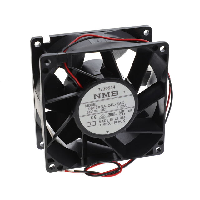 This is manufactured by NMB Technologies Corporation. The manufacturer part number is 09238RA-24L-EAD-0. The blades are constructed from robust plastic materials. It is assigned with possible HTSUS value of 8414.59.6590. Furthermore, the product is 38.00mm wide. The product features power and watts of 9.6 w. It has a 103.8 cfm (2.91m³/min) air flow rate. While the voltage range is 14 ~ 27.6vdc. It has noise values of 52.5db. It also exhibits voltage rating of 24vdc. This has integrated with a ball, a bearing with long-lasting features. The product has 14 ~ 158°f (-10 ~ 70°c) operating temperature range. It provides maximum rpm up to 5000 rpm. This product offers longer life span for 100000 hrs @ 25°c. The product has a 0.570 in h2o (142.0 pa) static pressure. The product's diameters include square - 92mm l x 92mm h. The product features 2 wire leads termination style. It has a long 22 weeks standard lead time. Additionally, the product's output is 0.400a. Its typical moisture sensitivity level is not applicable. The splendid features of the product include auto restart. The product 09238ra, is a highly preferred choice for users. The frame of the product is made from highly durable plastic materials. In addition, bulk is the available packaging type of the product. The latest designed fan is a type of tubeaxial offering unmatchable applications. The product is designated with the ear99 code number.