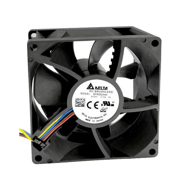 This is manufactured by Delta Electronics. The manufacturer part number is QFR0824HHP0. The blades are constructed from robust plastic materials. It also exhibits voltage rating of 24vdc. The product is rohs3 compliant. Furthermore, the product is 25.00mm wide. The product features power and watts of 2.4 w. It has a 39.6 cfm (1.11m³/min) air flow rate. It is approved by ce, curus, tuv. While the voltage range is 14 ~ 27.6vdc. It has noise values of 36.4db(a). This has integrated with a ball, a bearing with long-lasting features. The product has 14 ~ 158°f (-10 ~ 70°c) operating temperature range. It provides maximum rpm up to 3300 rpm. This product offers longer life span for 70000 hrs @ 40°c. The product has a 0.206 in h2o (51.3 pa) static pressure. It is shipped in box package . The product's diameters include square - 80mm l x 80mm h. The product features 4 wire leads termination style. It has a long 32 weeks standard lead time. Additionally, the product's output is 0.100a. Its typical moisture sensitivity level is not applicable. The splendid features of the product include locked rotor protection, pwm control, speed sensor (tach). The product qfr, is a highly preferred choice for users. The frame of the product is made from highly durable plastic materials. The latest designed fan is a type of tubeaxial offering unmatchable applications.