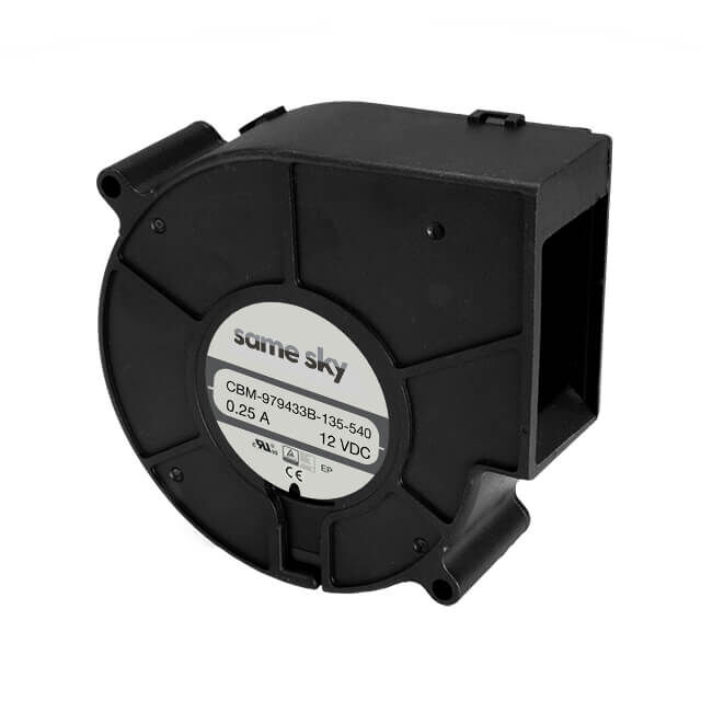 This is manufactured by Same Sky. The manufacturer part number is CBM-979433B-235-540-20. The blades are constructed from robust polybutylene terephthalate (pbt) materials. It is assigned with possible HTSUS value of 8414.59.6560. The product is rohs3 compliant. Furthermore, the product is 32.70mm wide. The product features power and watts of 12.24 w. It has a 23.9 cfm (0.669m³/min) air flow rate. It is approved by ce, curus, tuv. While the voltage range is 10.8 ~ 13.2vdc. It has noise values of 54.1db(a). It also exhibits voltage rating of 24vdc. In addition, it is reach unaffected. This has integrated with a ball, a bearing with long-lasting features. The product has 14 ~ 158°f (-10 ~ 70°c) operating temperature range. It provides maximum rpm up to 3500 rpm. This product offers longer life span for 70000 hrs @ 40°c. The product has a 0.900 in h2o (224.2 pa) static pressure. The product's diameters include rectangular/rounded - 97.68mm l x 94.18mm h. The product features 3 wire leads termination style. It has a long 19 weeks standard lead time. Additionally, the product's output is 0.510a. Its typical moisture sensitivity level is not applicable. The splendid features of the product include auto restart, speed sensor (tach). The product cbm-97b-2, is a highly preferred choice for users. The frame of the product is made from highly durable polybutylene terephthalate (pbt) materials. In addition, box is the available packaging type of the product. The latest designed fan is a type of blower offering unmatchable applications. The product is designated with the ear99 code number.