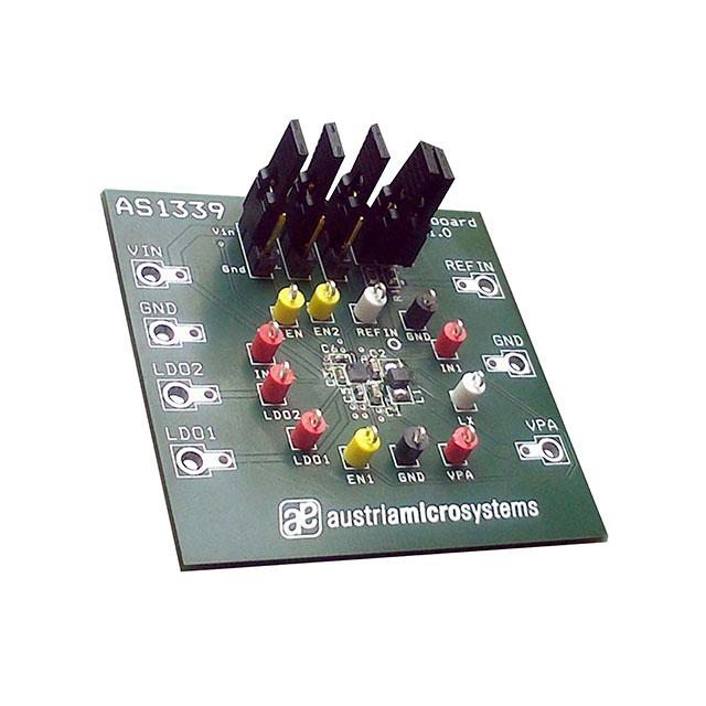 This is manufactured by ams-OSRAM USA INC.. The manufacturer part number is AS1339 EB. Basic Purpose: dc/dc, step down with ldo. The switching frequency of the standard product is 2mhz. The product is rohs non-compliant. The possible product's input voltage is 2.7v ~ 5.5v. It is assigned with possible HTSUS value of 9030.82.0000. In addition, it is reach unaffected. While, the output current includes 650ma. It is a fully populated type. It is shipped in box package . Its typical moisture sensitivity level is 1 (unlimited). The product offers buck regulator topology. Additionally, [Utilised IC / Part] is the used part of the product. Furthermore, the output voltage is 0.8 ~ 3.75v, 2.85v, 2.85v. The product is also supplied with contents, such as board(s). The product is designated with the ear99 code number. The output and type include 3, non-isolated.