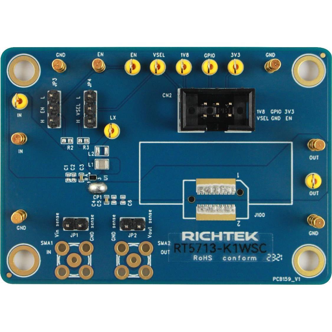 This is manufactured by Richtek USA Inc.. The manufacturer part number is EVB_RT5713-K1WSC. Basic Purpose: dc/dc, step down. It is assigned with possible HTSUS value of 8543.70.9860. The product is rohs3 compliant. The possible product's input voltage is 2.2v ~ 5.5v. The switching frequency of the standard product is 1.2mhz. In addition, it is reach unaffected. While, the output current includes 400ma. The richtek usa inc.'s product offers user-desired applications. It is a fully populated type. Its typical moisture sensitivity level is 1 (unlimited). It has a long 8 weeks standard lead time. The product offers buck regulator topology. Additionally, [Utilised IC / Part] is the used part of the product. In addition, box is the available packaging type of the product. The product is also supplied with contents, such as board(s). The product is designated with the ear99 code number. The output and type include 1, non-isolated.
