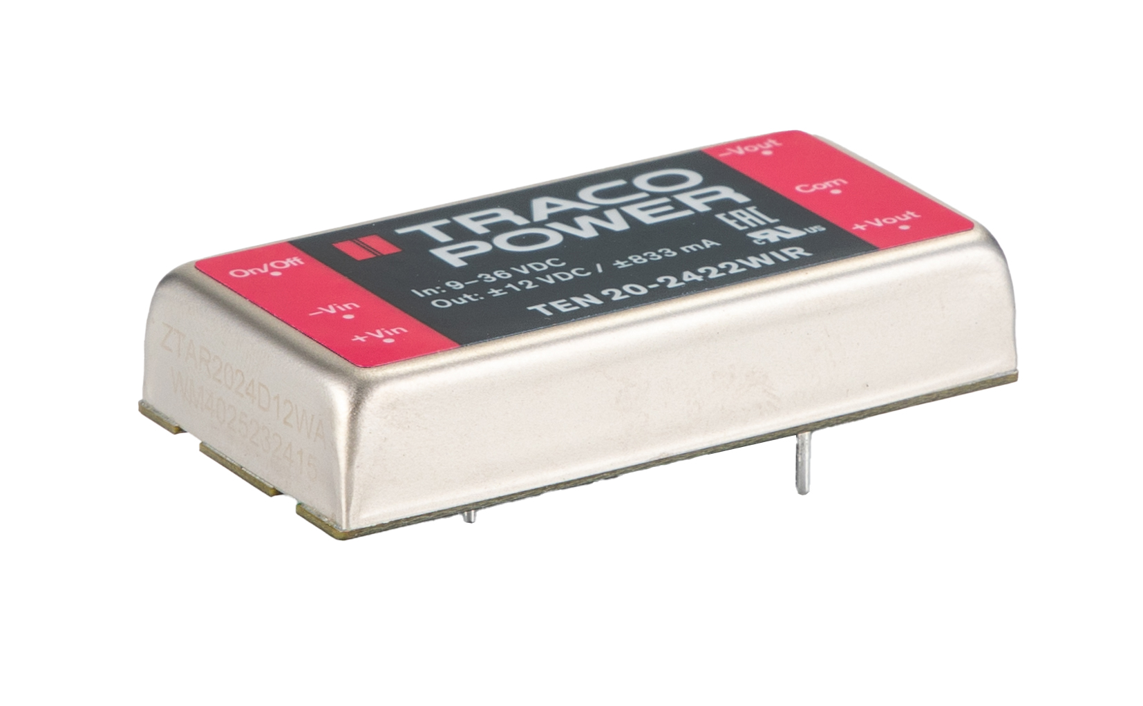 This is Through Hole 20W Isolated DC-DC Converter Vin 9 to 36 V dc Medical Approved Railway Approved manufactured by TRACOPOWER. The manufacturer part number is TEN 20-2422WIR. It has 1.6kv dc isolation voltage. While its minimum temperature is -40°c. Isolated options - yes. Furthermore, the product is 25.4mm wide. The product has +85°c maximum temperature. Load Regulation - 0.1%. The product complies with all safety standards, such as iec/ul 60950-1. The product is railway approved yes . It is a highly efficient product with an 88% of high efficiency. Additionally, the product is supplied with 2 outputs. It is shipped in 2 x 1 x 0.4 in package . Its accurate length is 50.8mm. Medical Approval - no. It carries ±833ma output current. The product is available in through hole configuration. The product ten 20wir, is a highly preferred choice for users. It has 9 → 36 v dc of input voltage range. The product comes in 10.2mm depth. Features a ±12v dc output voltage. It has 24 v dc of nominal input voltage. Feature 20w of power rating.