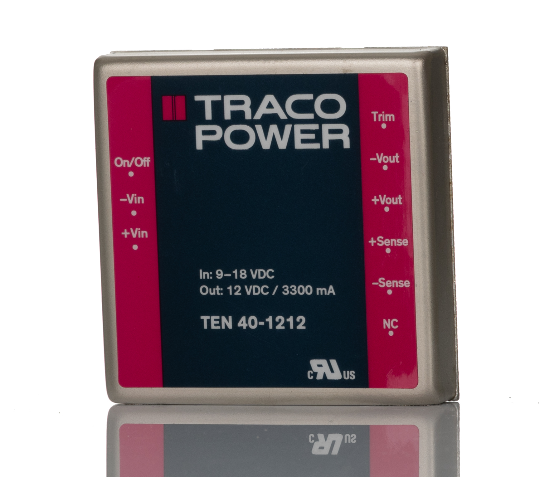 This is TEN 40 40W Isolated DC-DC Converter Through Hole Vin 9 → 18 V dc Vout 12V dc manufactured by TRACOPOWER. The manufacturer part number is TEN 40-1212. It has 1.5kv dc isolation voltage. While its minimum temperature is -40°c. Isolated options - yes. Furthermore, the product is 50.8mm wide. The product has +75°c maximum temperature. Load Regulation - 0.005. The product complies with all safety standards, such as ul 60950-1. It is a highly efficient product with an 86% of high efficiency. Additionally, the product is supplied with 1 outputs. It has 10% of output voltage adjustment range. It is shipped in 2 x 2 in package . Its accurate length is 50.8mm. It carries 3.3a output current. The product is available in through hole configuration. The product ten 40, is a highly preferred choice for users. It has 9 → 18 v dc of input voltage range. The product comes in 10.2mm depth. Features a 12v dc output voltage. It has 12 v dc of nominal input voltage. Feature 40w of power rating.
