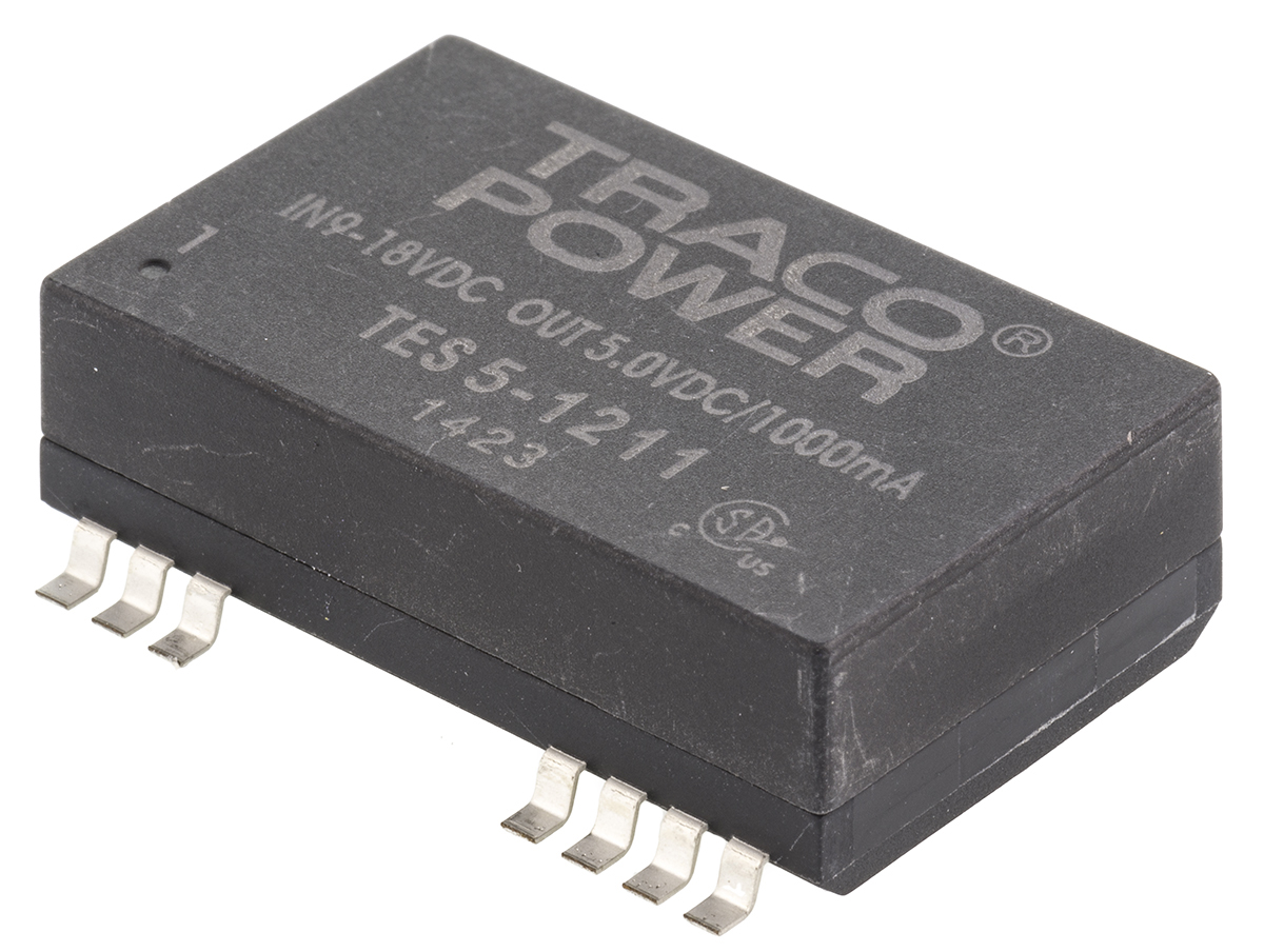 This is TES 5 5W Isolated DC-DC Converter Surface Mount Vin 9 → 18 V dc Vout 5V dc I/O isolation 1.5kV dc manufactured by TRACOPOWER. The manufacturer part number is TES 5-1211. Additionally, the product is supplied with 1 outputs. It has 1.5kv dc isolation voltage. It carries 1a output current. The product is available in surface mount configuration. It is shipped in smd package . The product has +85°c maximum temperature. The product tes 5, is a highly preferred choice for users. It has 9 → 18 v dc of input voltage range. Its accurate length is 33.4mm. Isolated options - yes. The product comes in 9.8mm depth. Features a 5v dc output voltage. While its minimum temperature is -40°c. It has 12 v dc of nominal input voltage. Feature 5w of power rating.