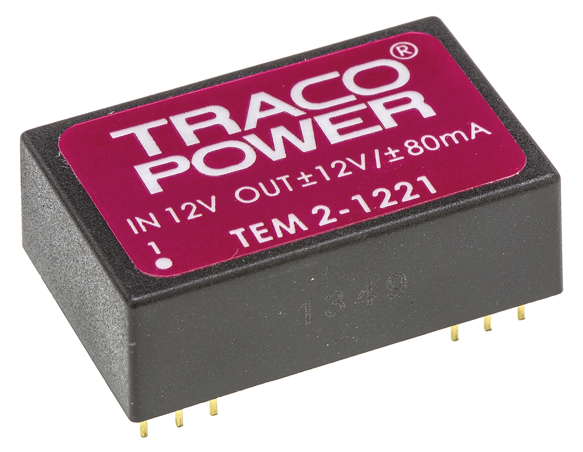 This is TEM 2 2W Isolated DC-DC Converter Through Hole Vin 10.8 → 13.2 V dc Vout ±12V dc manufactured by TRACOPOWER. The manufacturer part number is TEM 2-1221. Additionally, the product is supplied with 2 outputs. Load Regulation - ±3%. It has 1kv dc isolation voltage. It is a highly efficient product with an 59% of high efficiency. The product is available in through hole configuration. It is shipped in dip 24 package . The product has +60°c maximum temperature. The product tem 2, is a highly preferred choice for users. It has 10.8 → 13.2 v dc of input voltage range. Its accurate length is 32mm. Isolated options - yes. Furthermore, the product is 20mm wide. The product comes in 10mm depth. Features a ±12v dc output voltage. While its minimum temperature is -25°c. It has 12 v dc of nominal input voltage. Feature 2w of power rating. It carries ±80ma output current.