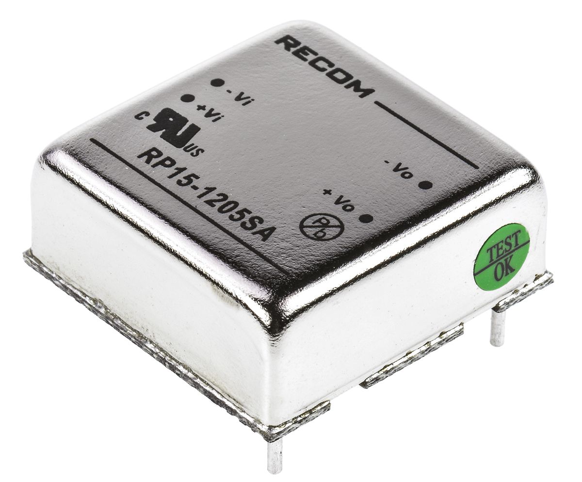 This is RP15 A 15W Isolated DC-DC Converter Through Hole Vin 9 → 18 V dc Vout 5V dc I/O isolation 1.6kV dc manufactured by Recom. The manufacturer part number is RP15-1205SA. Additionally, the product is supplied with 1 outputs. It has 1.6kv dc isolation voltage. It carries 3a output current. The product is available in through hole configuration. The product has +85°c maximum temperature. The product rp15 a, is a highly preferred choice for users. It has 9 → 18 v dc of input voltage range. Its accurate length is 25.4mm. Isolated options - yes. The product comes in 9.9mm depth. Features a 5v dc output voltage. While its minimum temperature is -40°c. It has 12 v dc of nominal input voltage. Feature 15w of power rating.