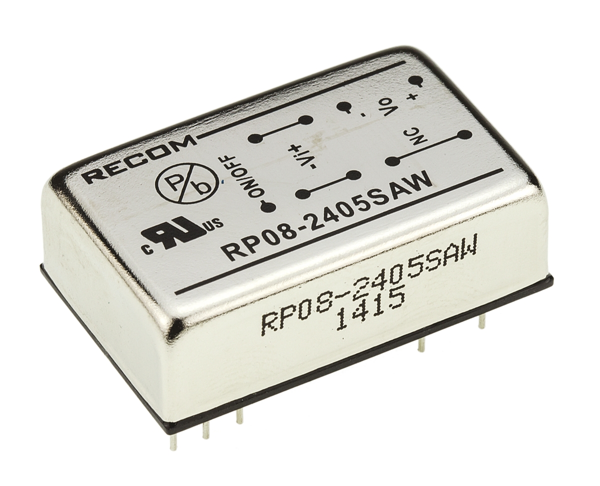 This is RP08 AW 8W Isolated DC-DC Converter Through Hole Vin 9 → 36 V dc Vout 5V dc I/O isolation 1.6kV dc manufactured by Recom. The manufacturer part number is RP08-2405SAW. Additionally, the product is supplied with 1 outputs. It has 1.6kv dc isolation voltage. It carries 1.6a output current. The product is available in through hole configuration. It is shipped in dip package . The product has +78°c maximum temperature. The product rp08-aw, is a highly preferred choice for users. It has 9 → 36 v dc of input voltage range. Isolated options - yes. The product comes in 10.2mm depth. Features a 5v dc output voltage. Its accurate length is 31.8mm. While its minimum temperature is -40°c. It has 24 v dc of nominal input voltage. Feature 8w of power rating.