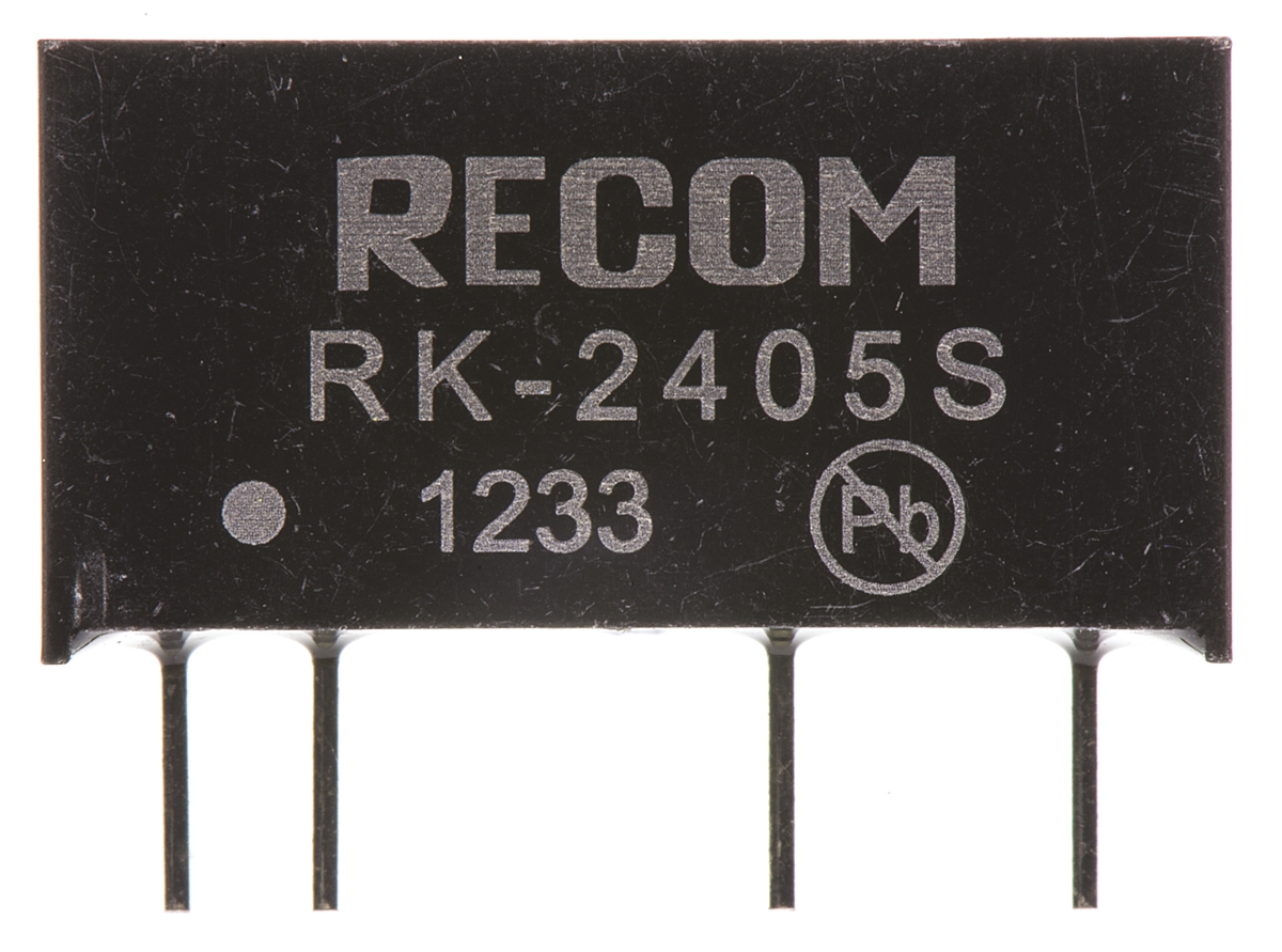 This is RK 1W Isolated DC-DC Converter Through Hole Vin 21.6 → 26.4 V dc Vout 5V dc I/O isolation 3kV dc manufactured by Recom. The manufacturer part number is RK-2405S. Additionally, the product is supplied with 1 outputs. It has 3kv dc isolation voltage. It carries 200ma output current. The product is available in through hole configuration. It is shipped in sip package . The product has +85°c maximum temperature. The product rk, is a highly preferred choice for users. It has 21.6 → 26.4 v dc of input voltage range. Its accurate length is 19.6mm. Isolated options - yes. The product comes in 10.2mm depth. Features a 5v dc output voltage. While its minimum temperature is -40°c. It has 24 v dc of nominal input voltage. Feature 1w of power rating.