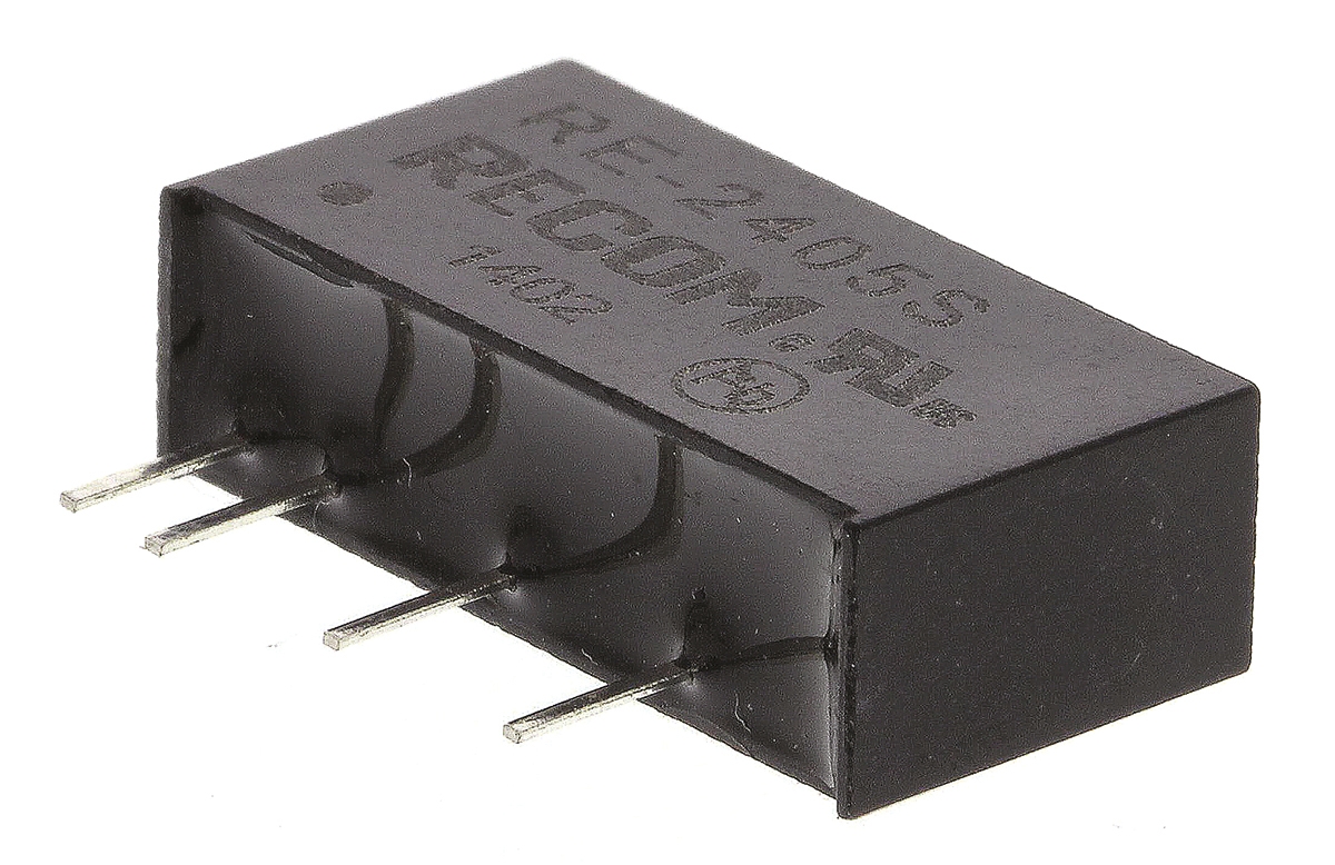 This is RE 1W Isolated DC-DC Converter Through Hole Vin 21.6 → 26.4 V dc Vout 5V dc manufactured by Recom. The manufacturer part number is RE-2405S. Additionally, the product is supplied with 1 outputs. It has 1kv dc isolation voltage. It carries 200ma output current. The product is available in through hole configuration. It is shipped in sip package . The product has +85°c maximum temperature. The product re, is a highly preferred choice for users. It has 21.6 → 26.4 v dc of input voltage range. Its accurate length is 19.6mm. Isolated options - yes. The product comes in 10.2mm depth. Features a 5v dc output voltage. While its minimum temperature is -40°c. It has 24 v dc of nominal input voltage. Feature 1w of power rating.