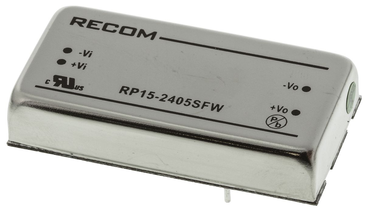 The Recom RP15-2405SFW is an isolated DC-DC converter designed for through-hole mounting, offering a wide input voltage range of 9 to 36 V DC and a stable output of 5 V DC. This high-performance converter ensures reliable power conversion with an impressive I/O isolation of 1.6kV DC, providing robust protection against electrical noise and interference. Its compact layout and high efficiency make it excellent for various applications where space and reliability are crucial.