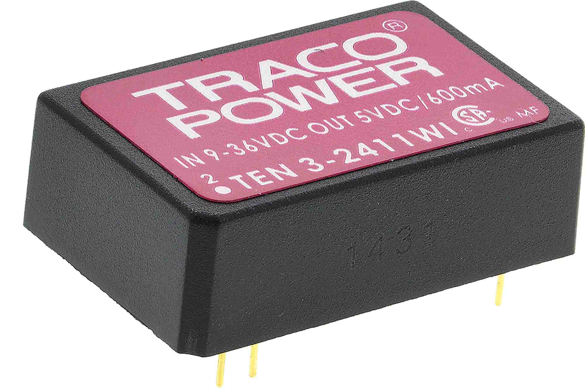 This is TEN 3WI 3W Isolated DC-DC Converter Through Hole Vin 9 → 36 V dc Vout 5V dc I/O isolation 1.5kV dc manufactured by TRACOPOWER. The manufacturer part number is TEN 3-2411WI. Additionally, the product is supplied with 1 outputs. Load Regulation - ±1%. It has 1.5kv dc isolation voltage. It is a highly efficient product with an 79% of high efficiency. The product is available in through hole configuration. It is shipped in dip 24 package . The product has +85°c maximum temperature. The product ten 3wi, is a highly preferred choice for users. It has 9 → 36 v dc of input voltage range. Its accurate length is 32mm. Isolated options - yes. Furthermore, the product is 20mm wide. The product comes in 10.2mm depth. Features a 5v dc output voltage. While its minimum temperature is -40°c. It has 24 v dc of nominal input voltage. Feature 3w of power rating. It carries 600ma output current.