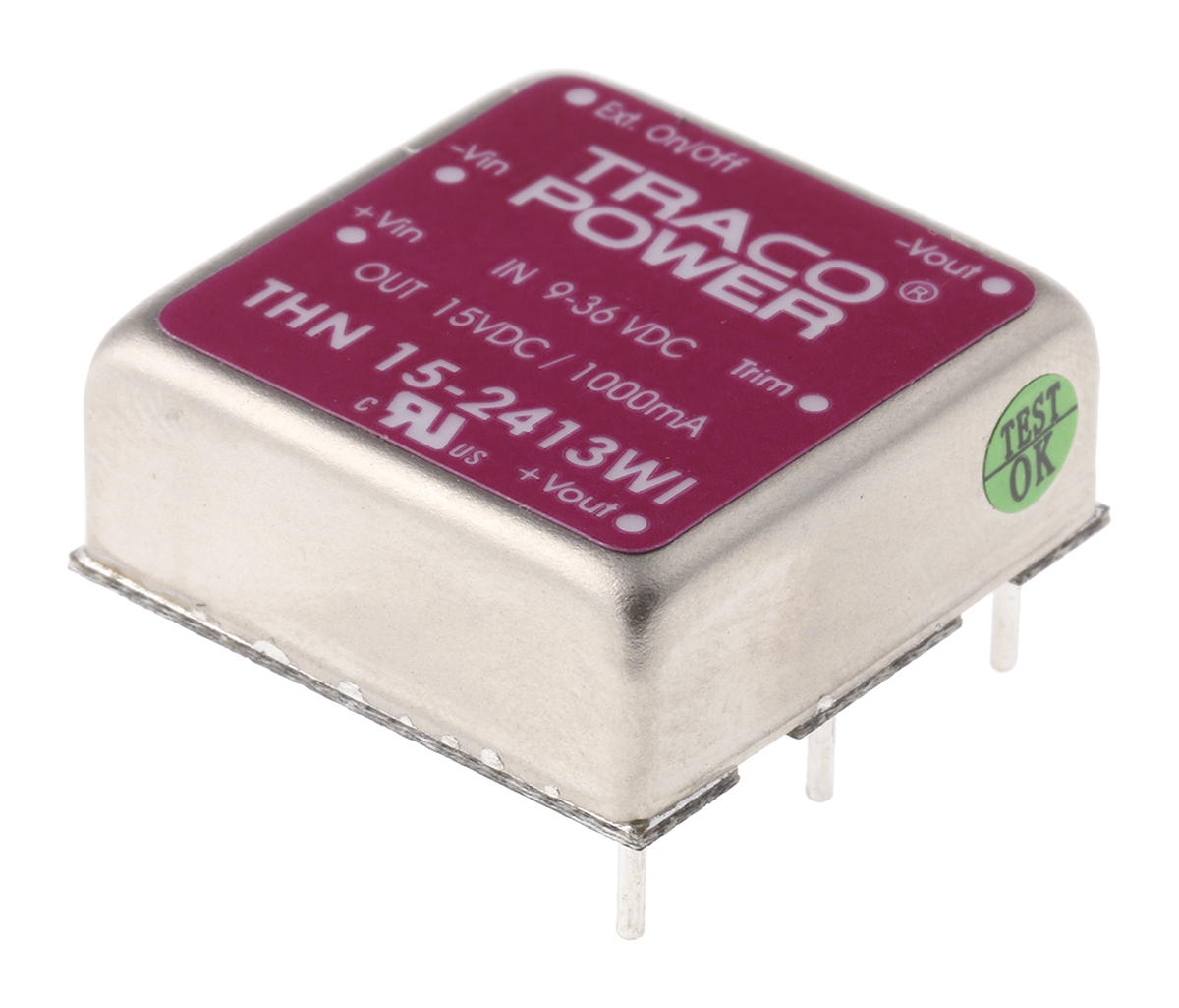 This is Through Hole 15W Isolated DC-DC Converter Vin 9 → 36 V dc I/O isolation 1600V dc Vout 15V dc manufactured by TRACOPOWER. The manufacturer part number is THN 15-2413WI. Additionally, the product is supplied with 1 outputs. It has 1.6kv dc isolation voltage. It is a highly efficient product with an 87% of high efficiency. The product is available in through hole configuration. It is shipped in encapsulated package . The product has +85°c maximum temperature. The product thn 15wi, is a highly preferred choice for users. It has 9 → 36 v dc of input voltage range. Its accurate length is 25.4mm. Isolated options - yes. Furthermore, the product is 25.4mm wide. The product comes in 9.9mm depth. Features a 15v dc output voltage. While its minimum temperature is -40°c. It has 24 v dc of nominal input voltage. Feature 15w of power rating. It carries 1a output current.