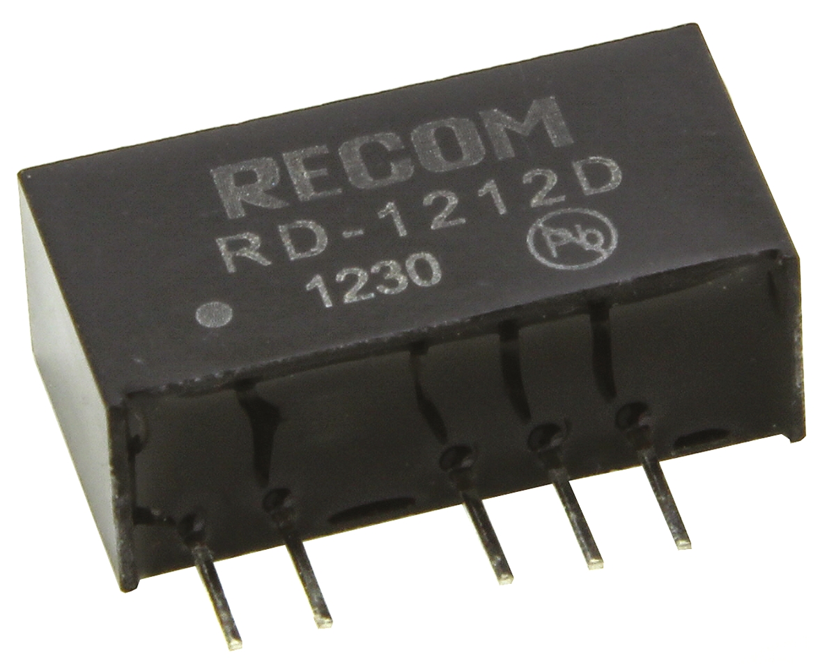 This is RD 2W Isolated DC-DC Converter Through Hole Vin 10.8 → 13.2 V dc Vout ±12V dc I/O isolation 1kV manufactured by Recom. The manufacturer part number is RD-1212D. Additionally, the product is supplied with 2 outputs. Load Regulation - ±10%. It has 1kv dc isolation voltage. It carries ±84ma output current. The product is available in through hole configuration. It is shipped in sip package . The product has +85°c maximum temperature. The product rd, is a highly preferred choice for users. It has 10.8 → 13.2 v dc of input voltage range. Isolated options - yes. The product comes in 10.2mm depth. Features a ±12v dc output voltage. Its accurate length is 19.65mm. While its minimum temperature is -40°c. It has 12 v dc of nominal input voltage. Feature 2w of power rating.