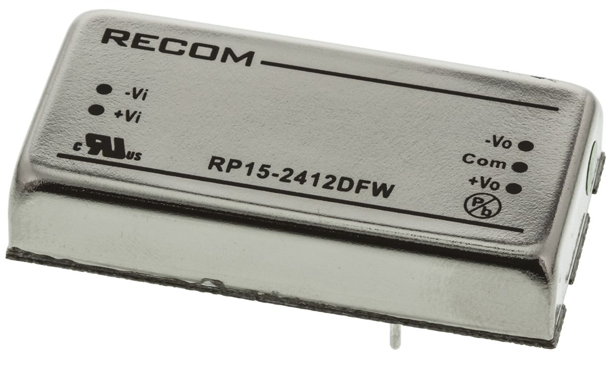 This is RP15 FW 15W Isolated DC-DC Converter Through Hole Vin 9 → 36 V dc Vout ±12V dc I/O isolation 1.6kV dc manufactured by Recom. The manufacturer part number is RP15-2412DFW. Additionally, the product is supplied with 2 outputs. It has 1.6kv dc isolation voltage. It carries ±625ma output current. The product is available in through hole configuration. The product has +75°c maximum temperature. The product rp15 fw, is a highly preferred choice for users. It has 9 → 36 v dc of input voltage range. Its accurate length is 25.4mm. Isolated options - yes. The product comes in 10.2mm depth. Features a ±12v dc output voltage. While its minimum temperature is -40°c. It has 24 v dc of nominal input voltage. Feature 15w of power rating.