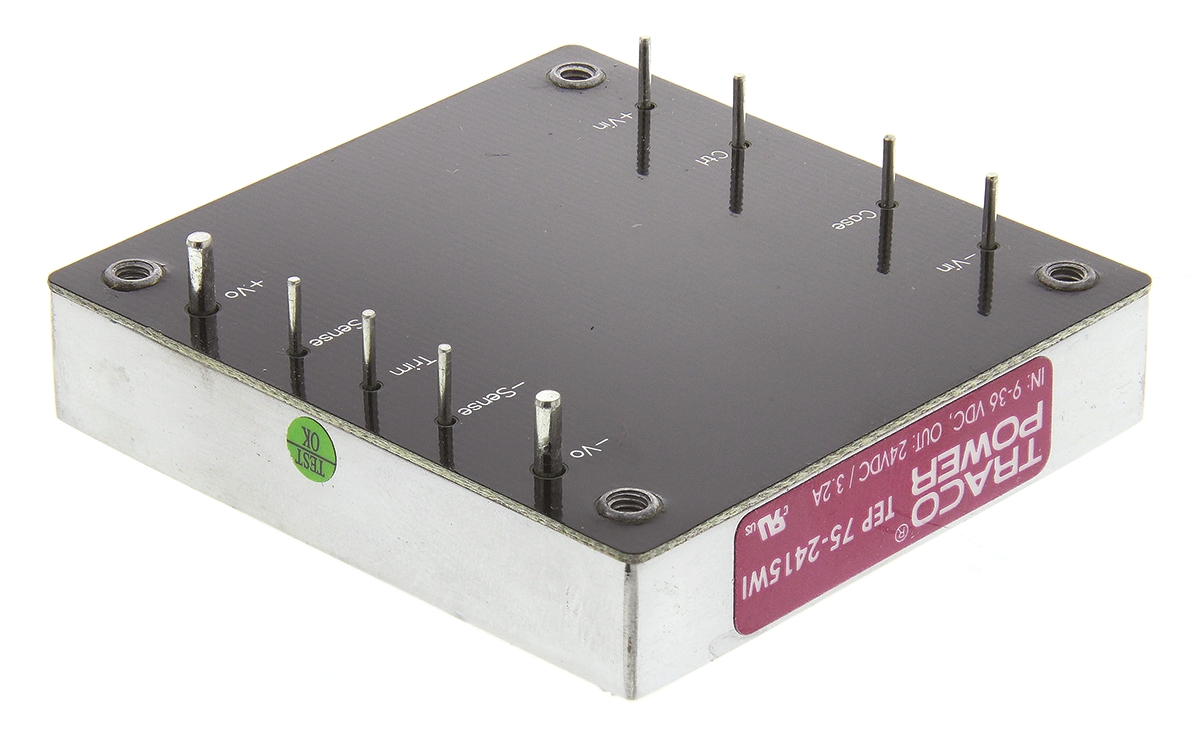 This is Through Hole 75W Isolated DC-DC Converter Vin 9 to 36 V dc Medical Approved Railway Approved manufactured by TRACOPOWER. The manufacturer part number is TEP 75-2415WI. It has 2.25kv dc isolation voltage. While its minimum temperature is -40°c. Isolated options - yes. The product has +75°c maximum temperature. Load Regulation - ±0.1%. The product complies with all safety standards, such as en 60950-1. The product is railway approved yes . It is a highly efficient product with an 87% of high efficiency. Additionally, the product is supplied with 1 outputs. It has -20 to '+10% of output voltage adjustment range. It is shipped in 1/2 brick package . The product comes in 12.7mm depth. Medical Approval - no. It carries 3.2a output current. The product is available in through hole configuration. The product tep 75wi, is a highly preferred choice for users. It has 9 → 36 v dc of input voltage range. Its accurate length is 61mm. Features a 24v dc output voltage. It has 24 v dc of nominal input voltage. Feature 75w of power rating.