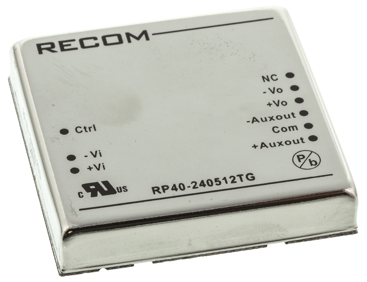 This is RP40 G 40W Isolated DC-DC Converter Through Hole Vin 18 → 36 V dc Vout 5/±12V dc manufactured by Recom. The manufacturer part number is RP40-240512TG. Additionally, the product is supplied with 3 outputs. It has 1.6kv dc isolation voltage. It is a highly efficient product with an 87% of high efficiency. The product is available in through hole configuration. It is shipped in 2 x 2 in package . The product has +85°c maximum temperature. The product rp40-g, is a highly preferred choice for users. It has 18 → 36 v dc of input voltage range. Its accurate length is 50.8mm. Isolated options - yes. Furthermore, the product is 50.8mm wide. The product comes in 10.2mm depth. Features a 5 v dc, ±12v dc output voltage. While its minimum temperature is -40°c. It has 24 v dc of nominal input voltage. Feature 40w of power rating. It carries 6 a, ±400ma output current.