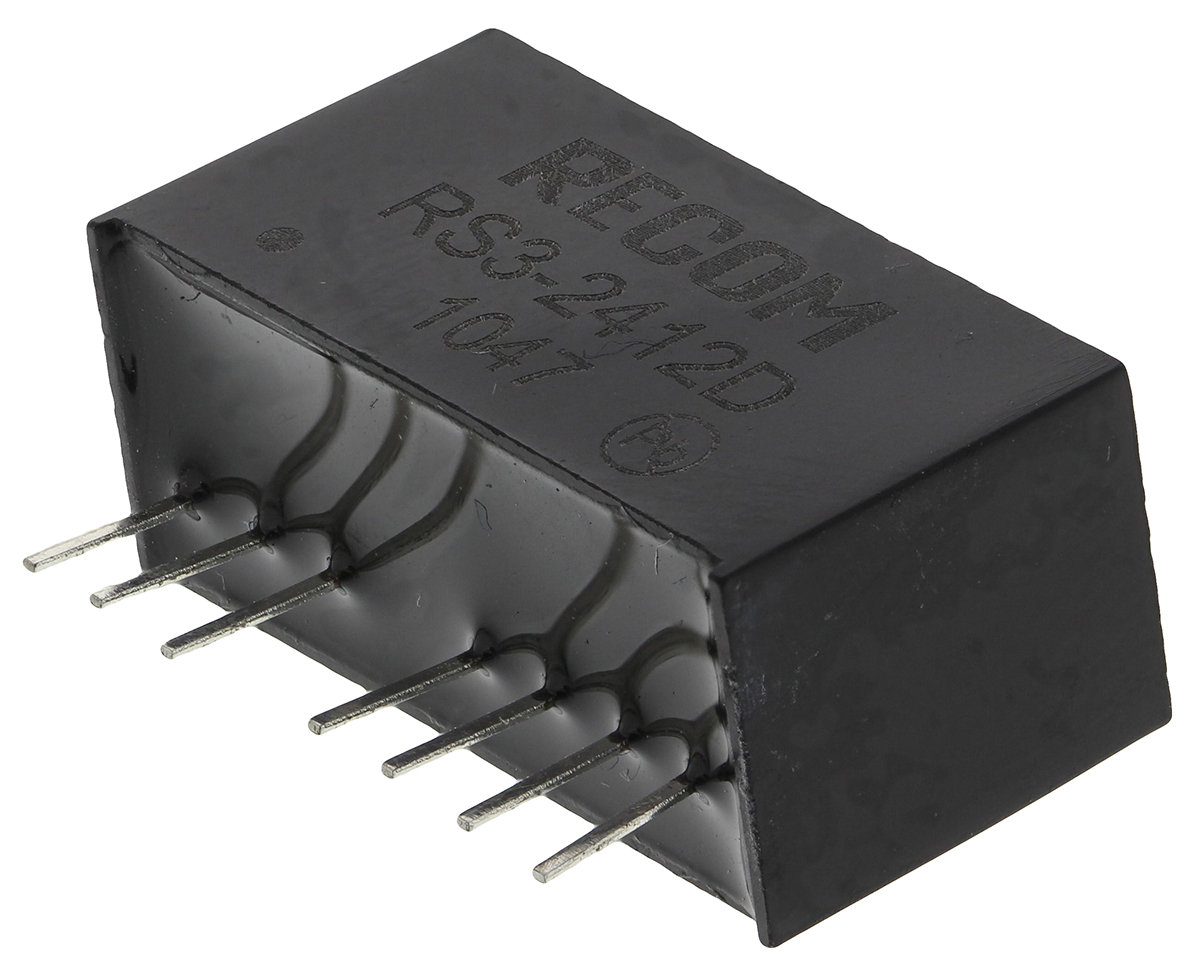 This is RS3 3W Isolated DC-DC Converter Through Hole Vin 18 → 36 V dc Vout ±12V dc I/O isolation 500V ac manufactured by Recom. The manufacturer part number is RS3-2412D. Additionally, the product is supplied with 2 outputs. It has 500v ac isolation voltage. It carries ±125ma output current. The product is available in through hole configuration. It is shipped in sip package . The product has +71°c maximum temperature. The product rs3, is a highly preferred choice for users. It has 18 → 36 v dc of input voltage range. Isolated options - yes. The product comes in 11.1mm depth. Features a ±12v dc output voltage. Its accurate length is 21.8mm. While its minimum temperature is -40°c. It has 24 v dc of nominal input voltage. Feature 3w of power rating.