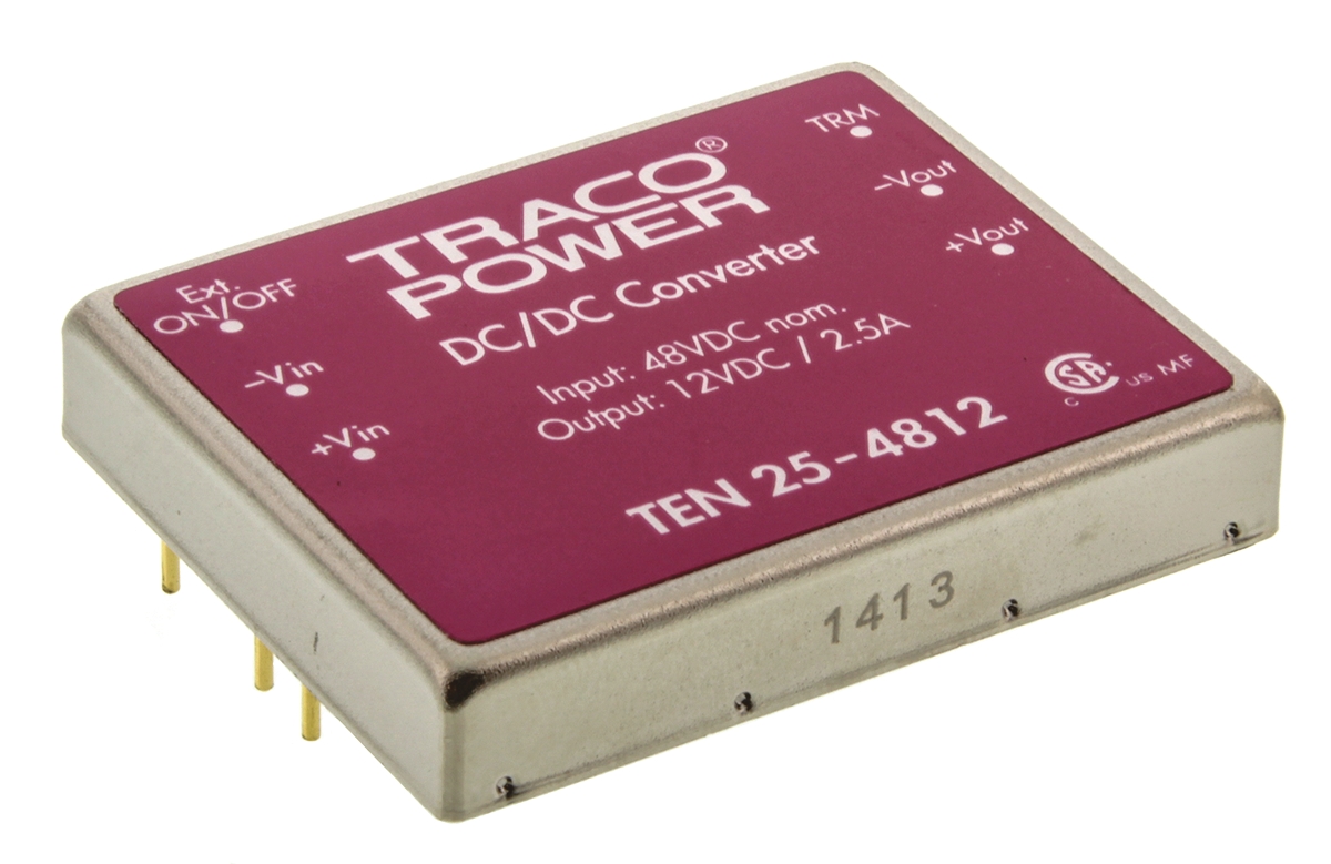 This is TEN 25 25 W 30 W Isolated DC-DC Converter Through Hole Vin 36 → 75 V dc Vout 12V dc manufactured by TRACOPOWER. The manufacturer part number is TEN 25-4812. It has 1.5kv dc isolation voltage. While its minimum temperature is -40°c. Isolated options - yes. Furthermore, the product is 50.8mm wide. The product has +85°c maximum temperature. Load Regulation - ±0.5%. The product complies with all safety standards, such as iec/ul 60950-1. The product is railway approved no . It is a highly efficient product with an 89% of high efficiency. Additionally, the product is supplied with 1 outputs. It is shipped in 1.6 x 2 in package . Its accurate length is 40.6mm. Medical Approval - no. It carries 2.5a output current. The product is available in through hole configuration. The product ten 25, is a highly preferred choice for users. It has 36 → 75 v dc of input voltage range. The product comes in 9.3mm depth. Features a 12v dc output voltage. It has 48 v dc of nominal input voltage. Feature 25 w, 30w of power rating.