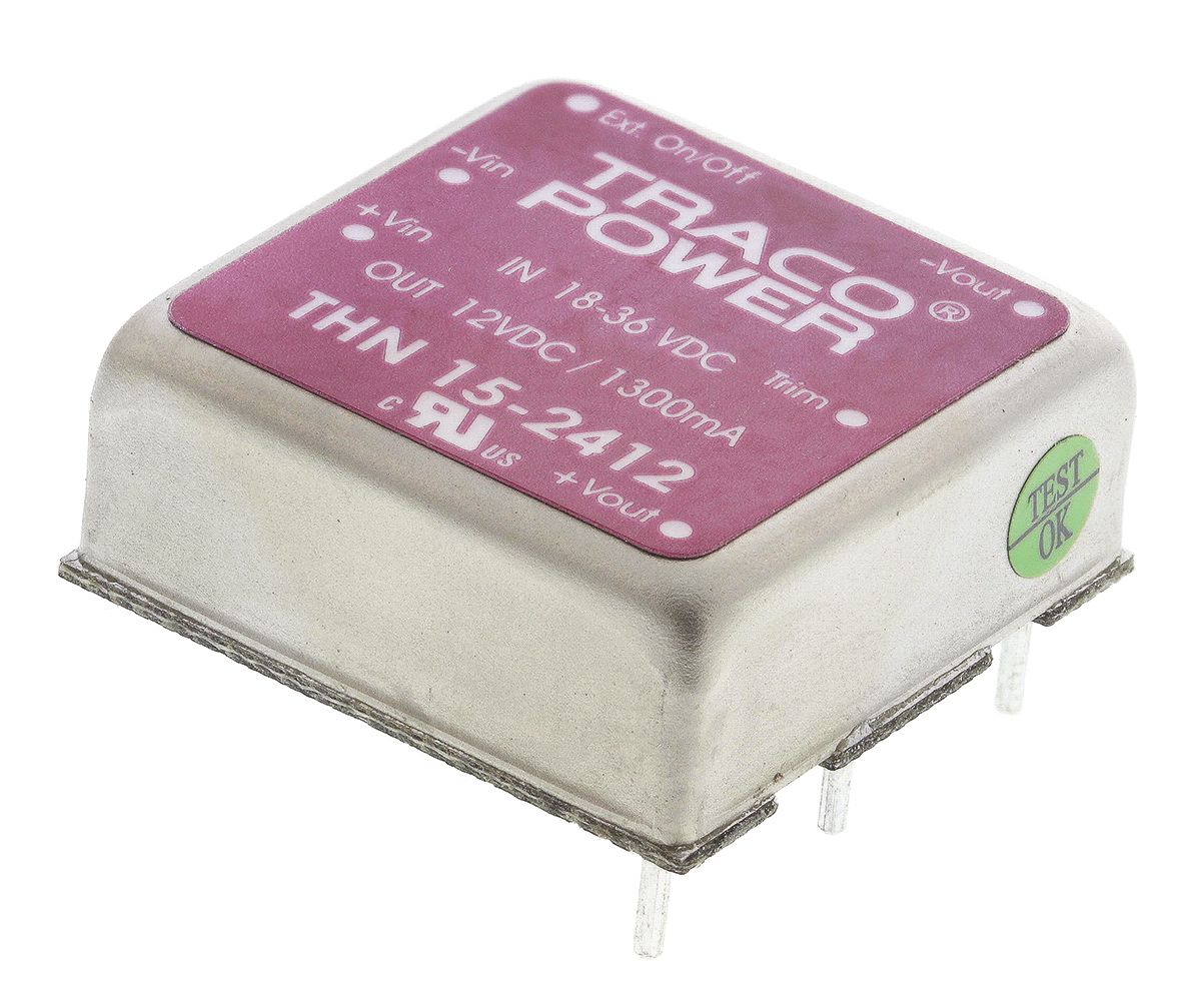 This is Through Hole 15W Isolated DC-DC Converter Vin 18 → 36 V dc I/O isolation 1.5kV dc Vout 12V dc manufactured by TRACOPOWER. The manufacturer part number is THN 15-2412. Additionally, the product is supplied with 1 outputs. It has 1.5kv dc isolation voltage. It carries 1.3a output current. The product is available in through hole configuration. The product has +85°c maximum temperature. The product thn 15, is a highly preferred choice for users. It has 18 → 36 v dc of input voltage range. Its accurate length is 25.4mm. Isolated options - yes. The product comes in 9.9mm depth. Features a 12v dc output voltage. While its minimum temperature is -40°c. It has 24 v dc of nominal input voltage. Feature 15w of power rating.