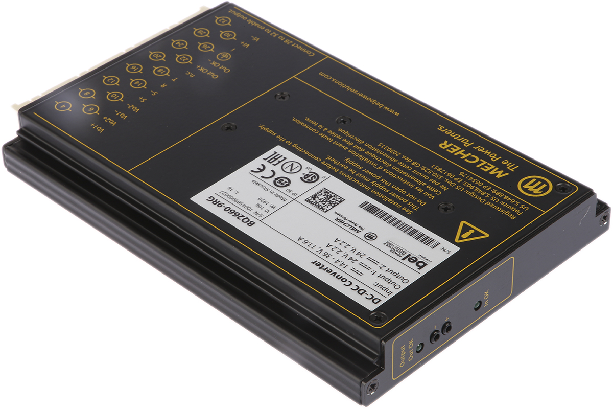 This is Q 132W Isolated DC-DC Converter Rack Mount Vin 14.4 → 36 V dc Vout 24V dc manufactured by BEL POWER SOLUTIONS INC. The manufacturer part number is BQ2660-9RG. Additionally, the product is supplied with 2 outputs. Load Regulation - ±1%. It has 4.2kv dc isolation voltage. The product complies with all safety standards, such as en 45545, en 50121-3-2:2016, en 50121-4:2016, en 50155:2017, en 62368-1, iec 62368-1. The product is available in rack mount configuration. The product has +71°c maximum temperature. The product q, is a highly preferred choice for users. It has 14.4 → 36 v dc of input voltage range. Its accurate length is 172mm. The product is railway approved yes . Isolated options - yes. It is a highly efficient product with an 90.5% of high efficiency. The product comes in 20mm depth. Features a ±24v dc output voltage. While its minimum temperature is -25°c. It has 24 v dc of nominal input voltage. Feature 132w of power rating. It carries 2.75a output current. Medical Approval - no.