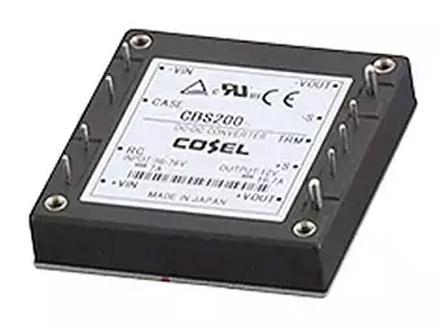 This is 200.4W Isolated DC-DC Converter Through Hole Vout 12V dc I/O isolation 1 kV ac 1.5 kV dc manufactured by Cosel. The manufacturer part number is CBS2002412. Additionally, the product is supplied with 1 outputs. Load Regulation - 24mv. It has 1 kv ac, 1.5kv dc isolation voltage. It carries 16.7a output current. The product is available in through hole configuration. The product has +100°c maximum temperature. While its minimum temperature is -40°c. It has 18 → 36 v dc of input voltage range. Its accurate length is 61mm. Isolated options - yes. It is a highly efficient product with an 87% of high efficiency. The product comes in 12.7mm depth. Features a 12v dc output voltage. It has 18 → 36 v dc of nominal input voltage. Feature 200.4w of power rating.