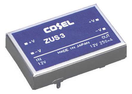 This is Through Hole 3W Isolated DC-DC Converter I/O isolation 500V ac Vout 5V dc manufactured by Cosel. The manufacturer part number is ZUS32405. Additionally, the product is supplied with 1 outputs. It has 500v ac isolation voltage. It carries 600ma output current. The product is available in through hole configuration. The product has +71°c maximum temperature. While its minimum temperature is -20°c. It has 18 → 36 v dc of input voltage range. Its accurate length is 35mm. Isolated options - yes. The product comes in 7mm depth. Features a 5v dc output voltage. It has 18 → 36 v dc of nominal input voltage. Feature 3w of power rating.
